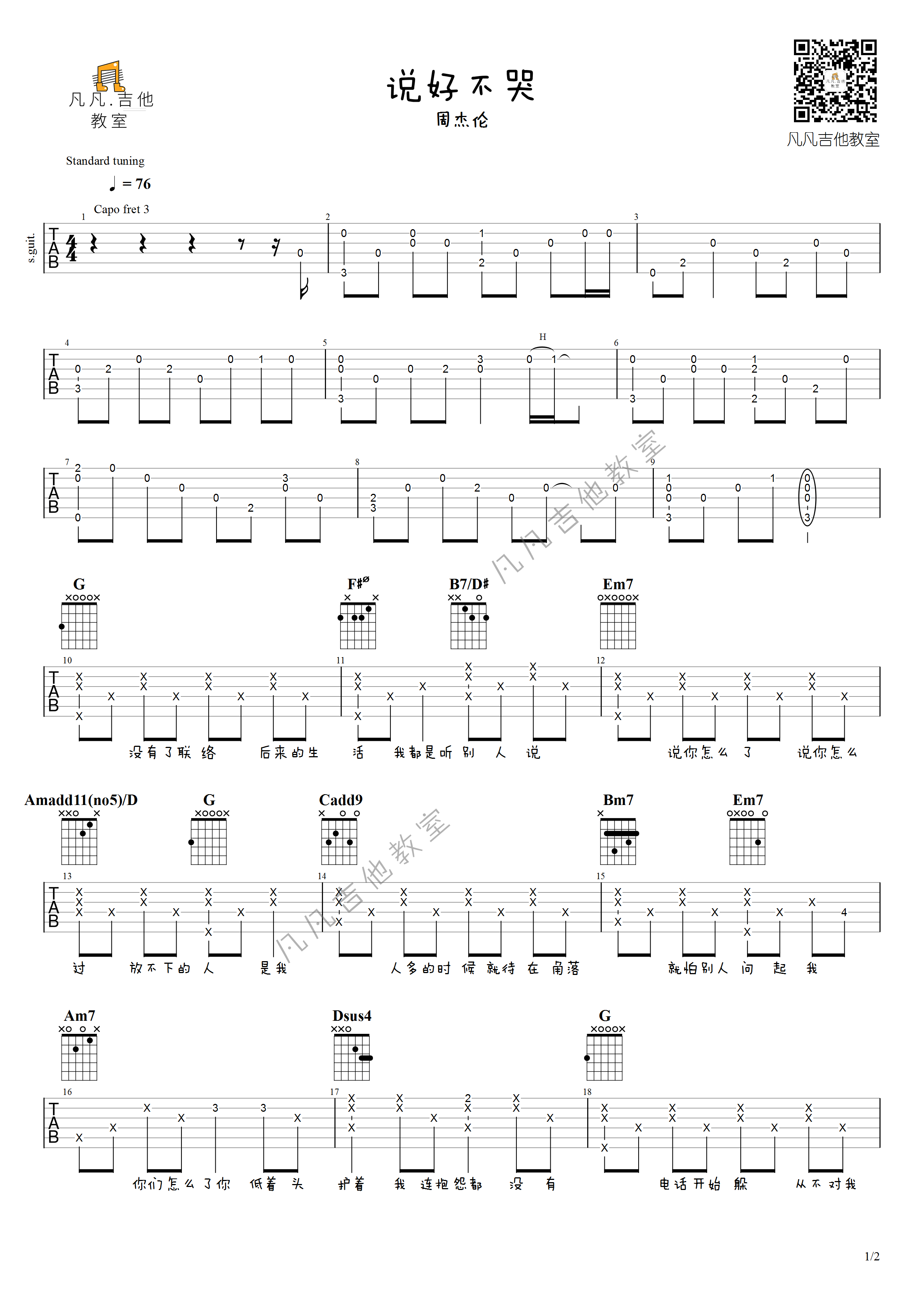 说好不哭吉他谱 - 周杰伦 - 吉他弹唱谱
