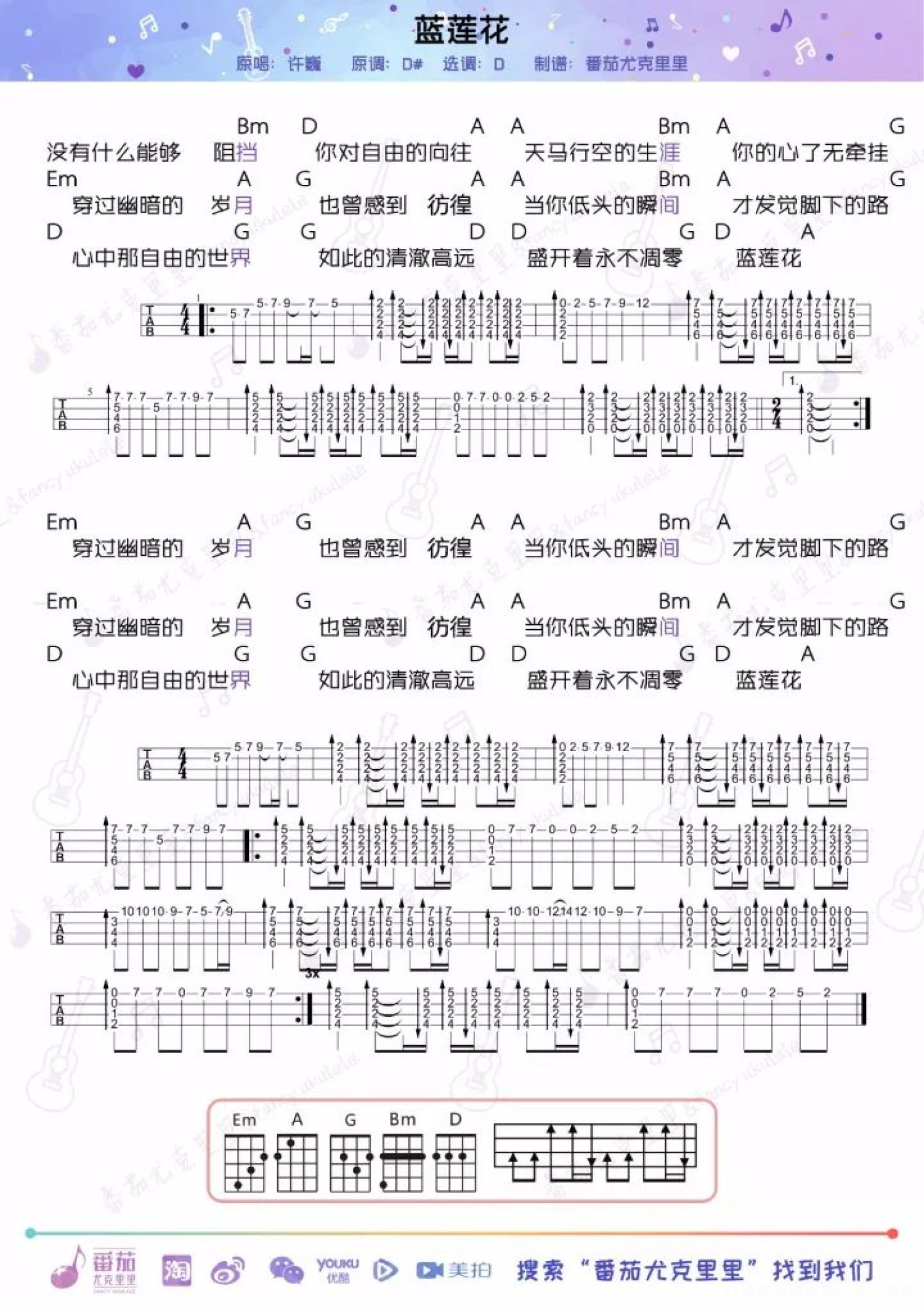 曲谱介绍: 《蓝莲花》尤克里里谱
