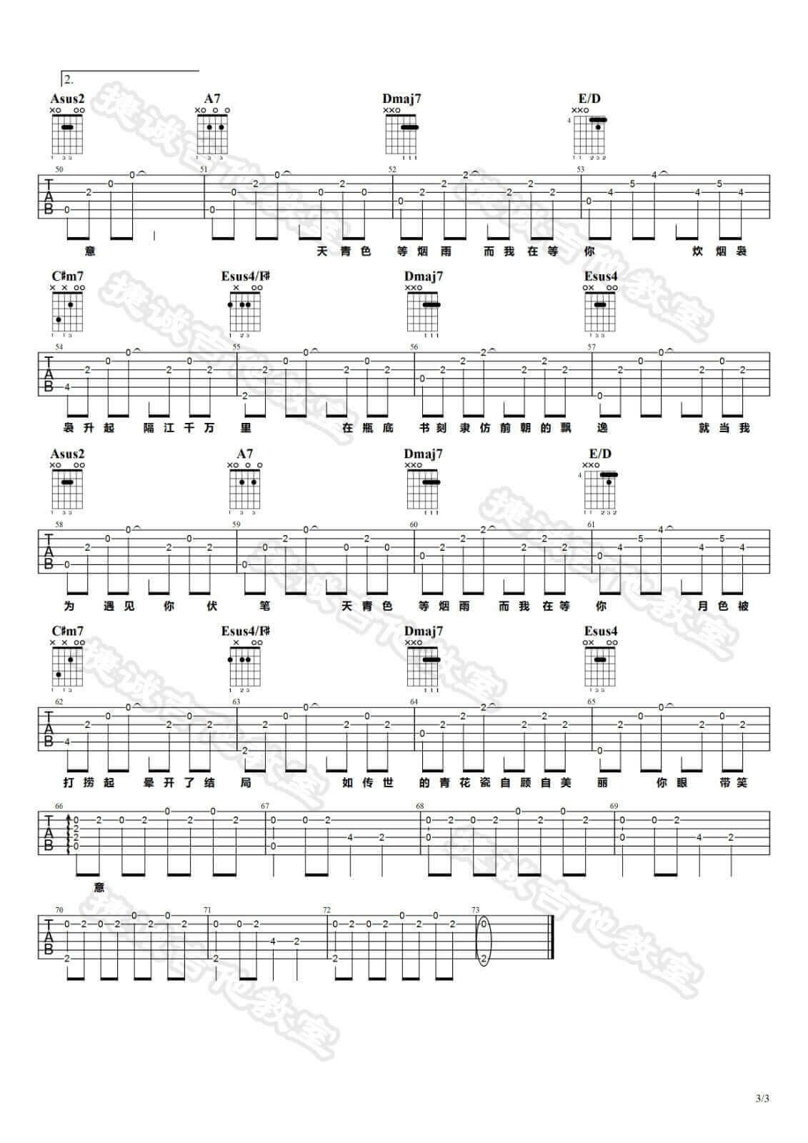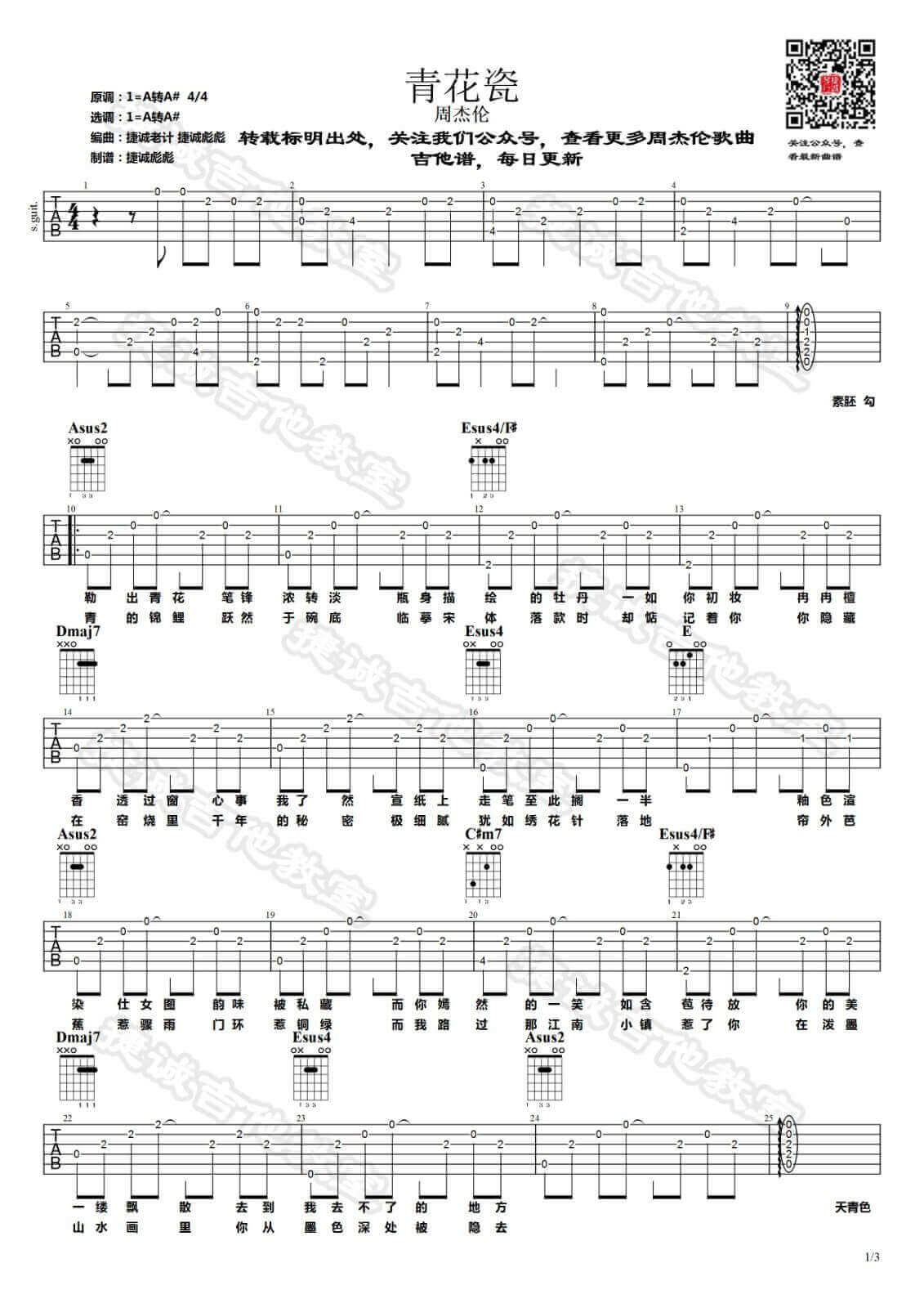 青花瓷吉他谱 - 周杰伦 - A调吉他弹唱谱
