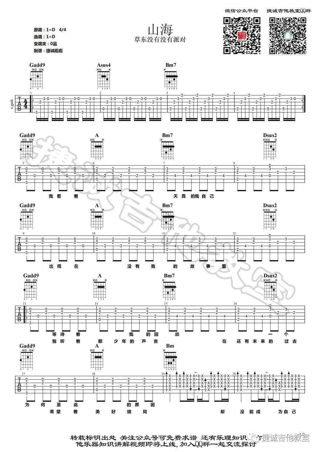 曲谱介绍: 山海吉他谱采用了D调指法,由捷诚吉他教室编配完成。副歌部分,歌手肆意嘶吼,不得不妥协的情绪,如果经历过这一感受的人,一定会很痛吧,触景生情。