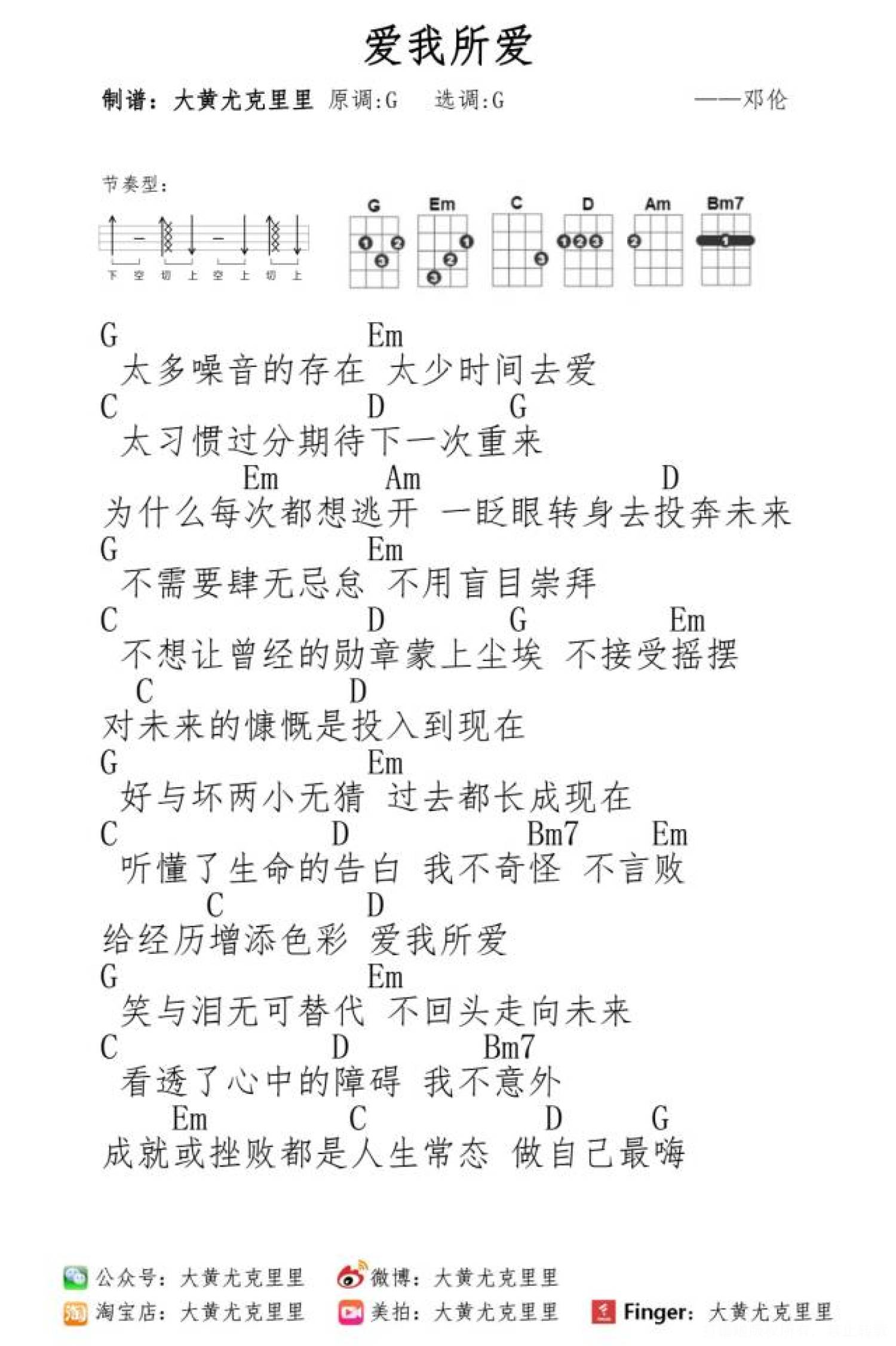 爱我所爱尤克里里谱 - 邓伦