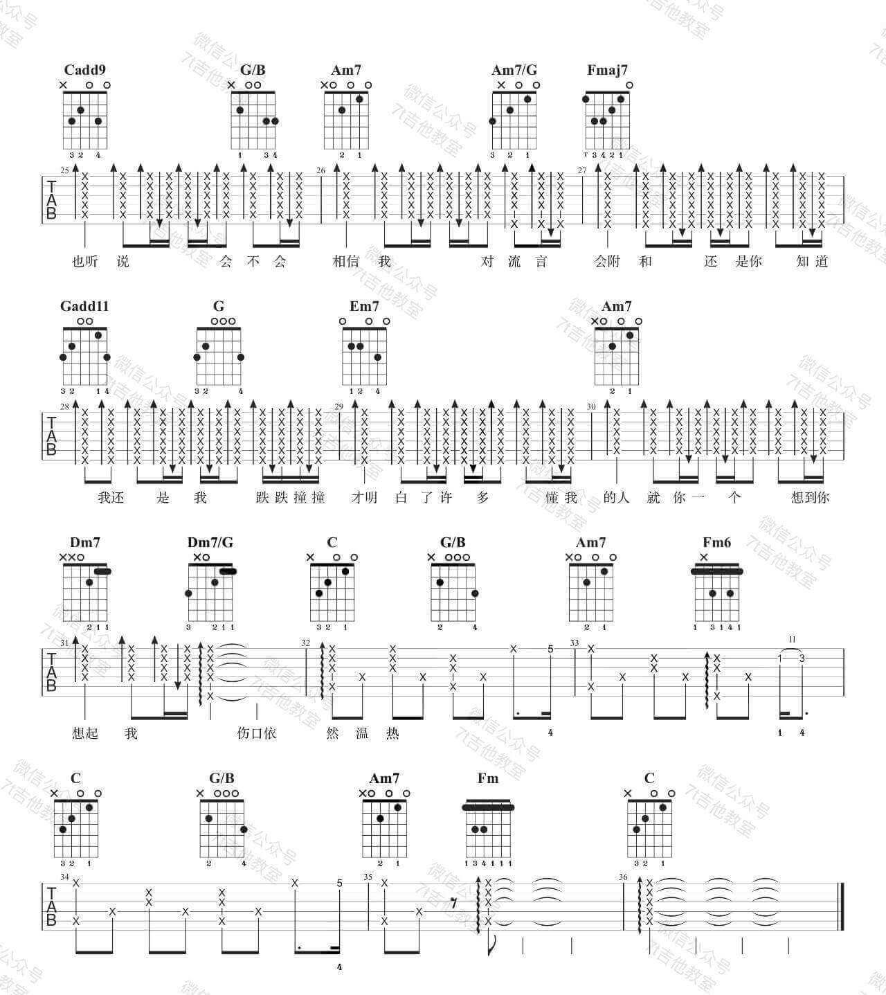 曲谱介绍: 如果你也听说吉他谱采用C调指法,由7T吉他教室编配。这首歌还未继续听下去,光是前奏,便让人产生一种沉重的情绪,旋律很安静,歌手用她独有的嗓音,唱出了歌词里的悲伤,这是一首周杰伦作曲张惠妹演唱的一首歌,周董的旋律总是如此的动人。