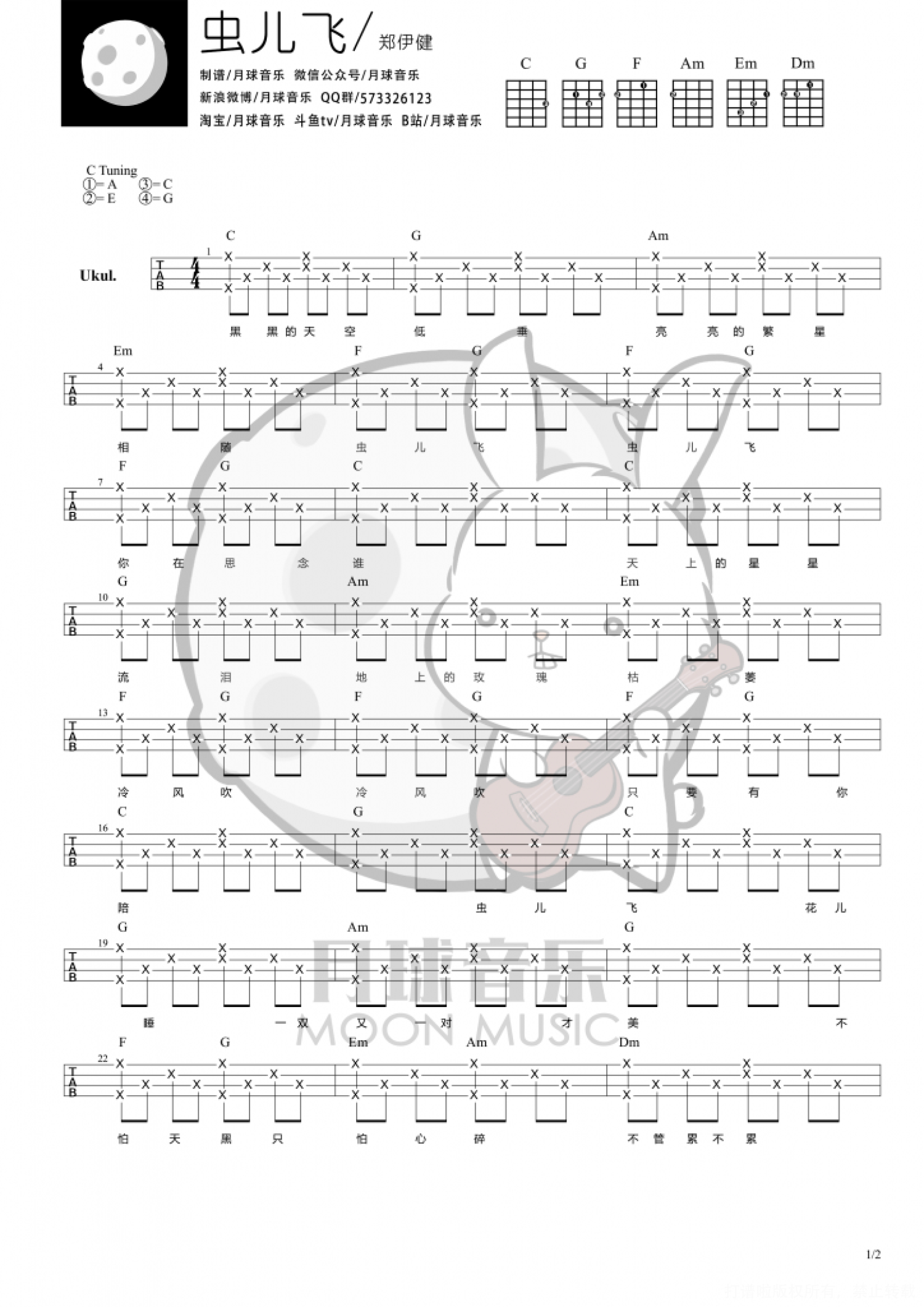 虫儿飞尤克里里谱 - 郑伊健