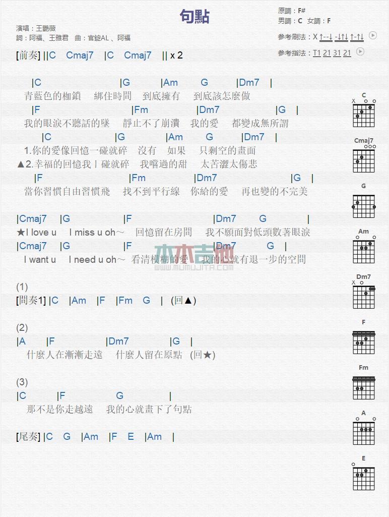 当前位置:琴谱网>吉他弹唱>句点