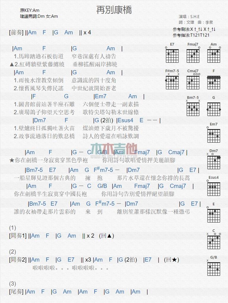 再别康桥_吉他谱 - 再别康桥 - 吉他弹唱谱