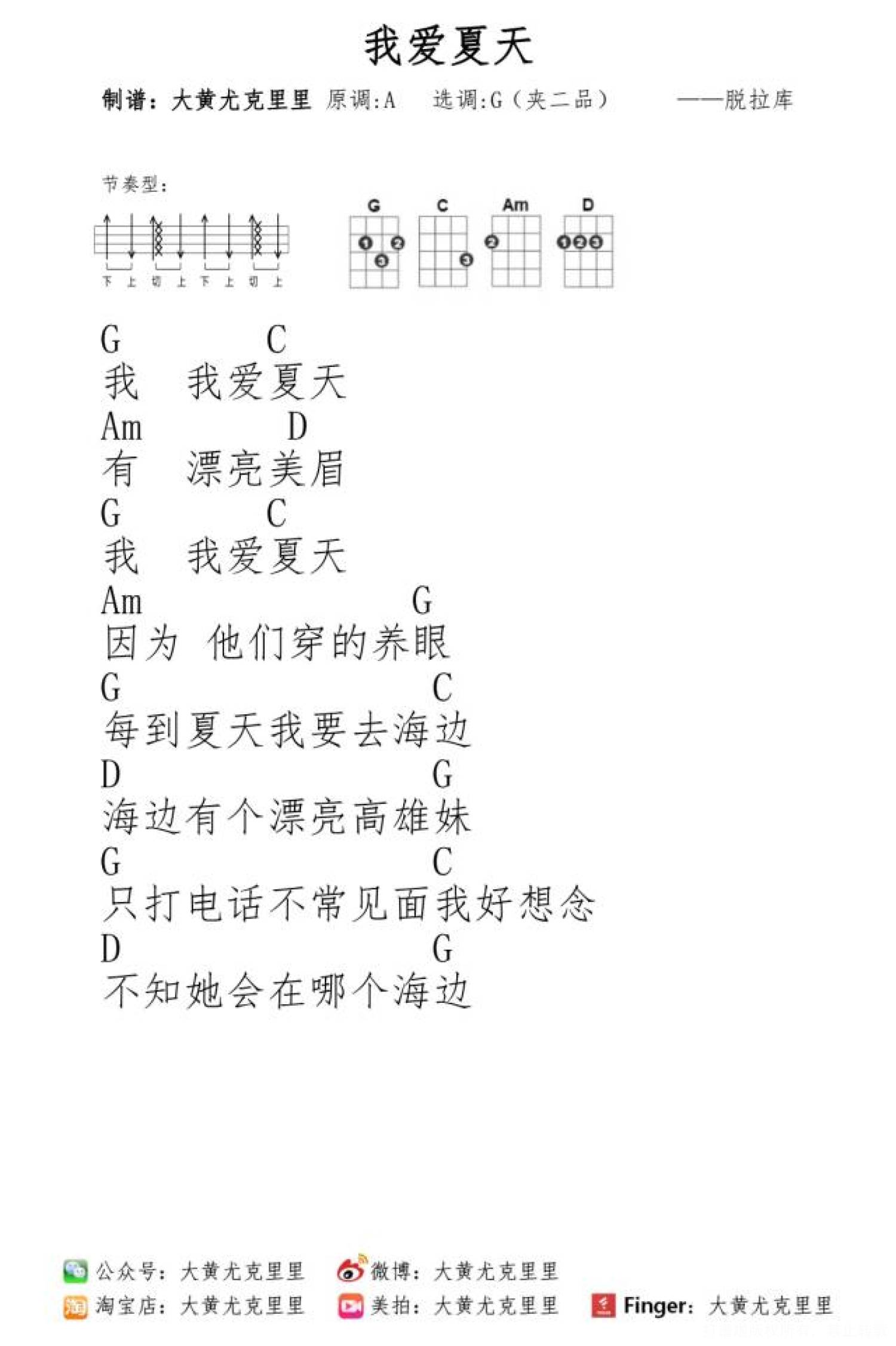 曲谱介绍: 《我爱夏天》尤克里里谱