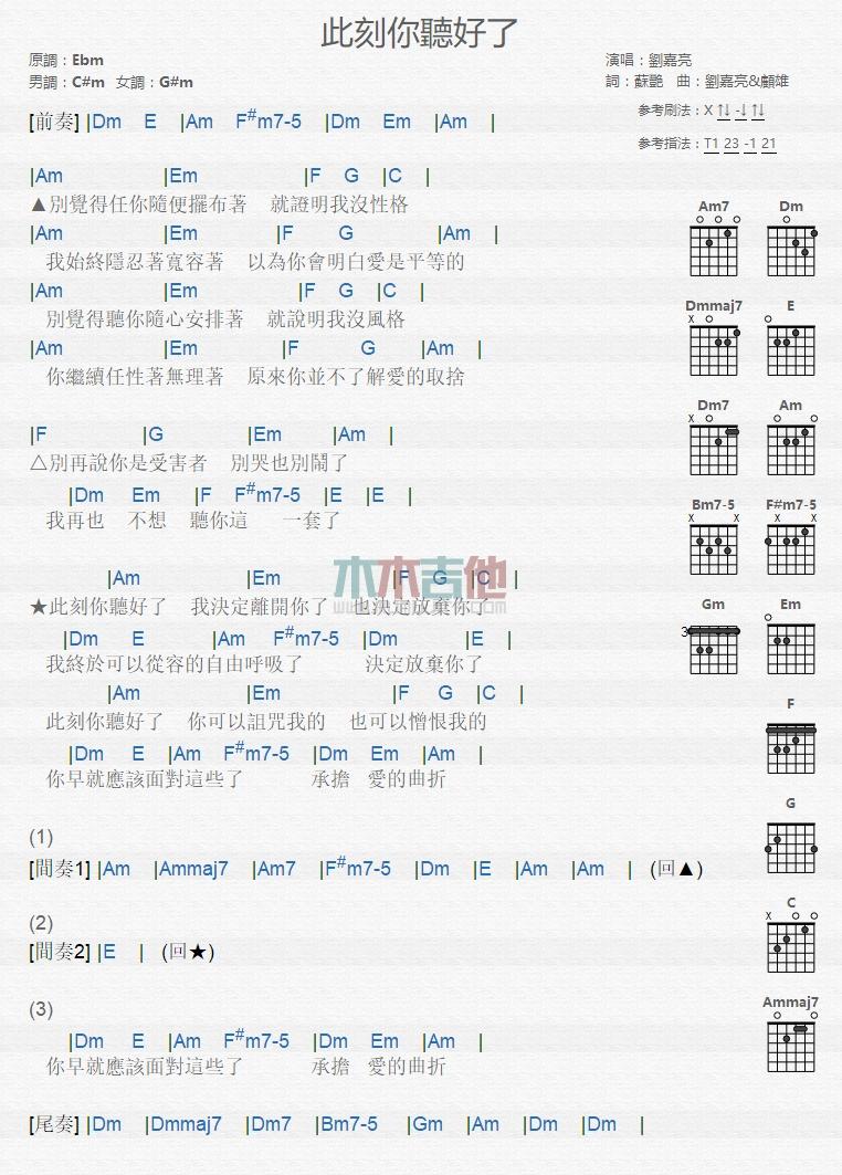 此刻你听好了_吉他谱 - 此刻你听好了 - 吉他弹唱谱