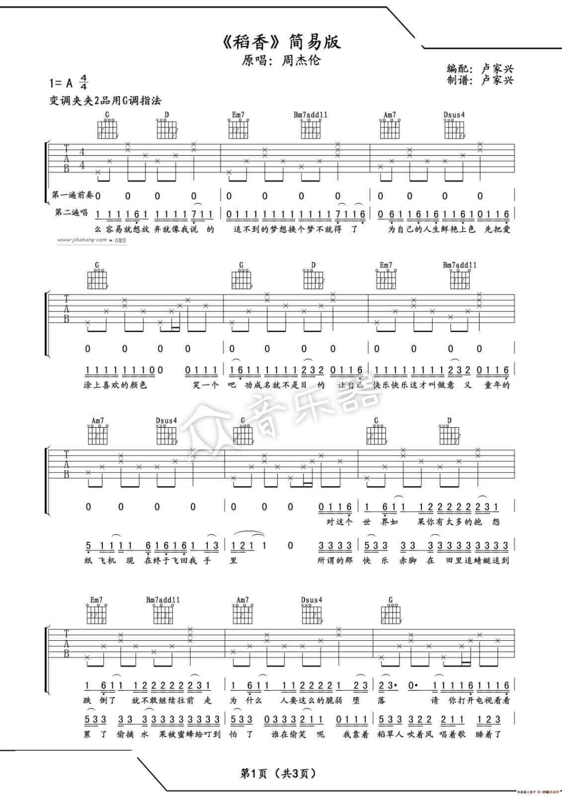 稻香吉他谱 - 周杰伦 - A调吉他弹唱谱
