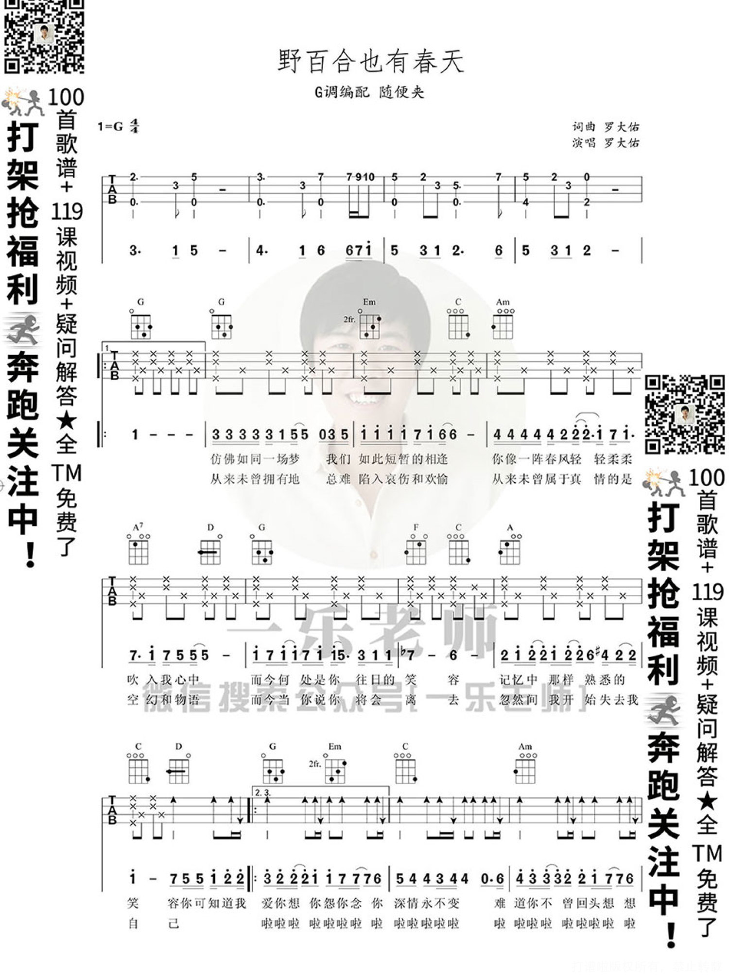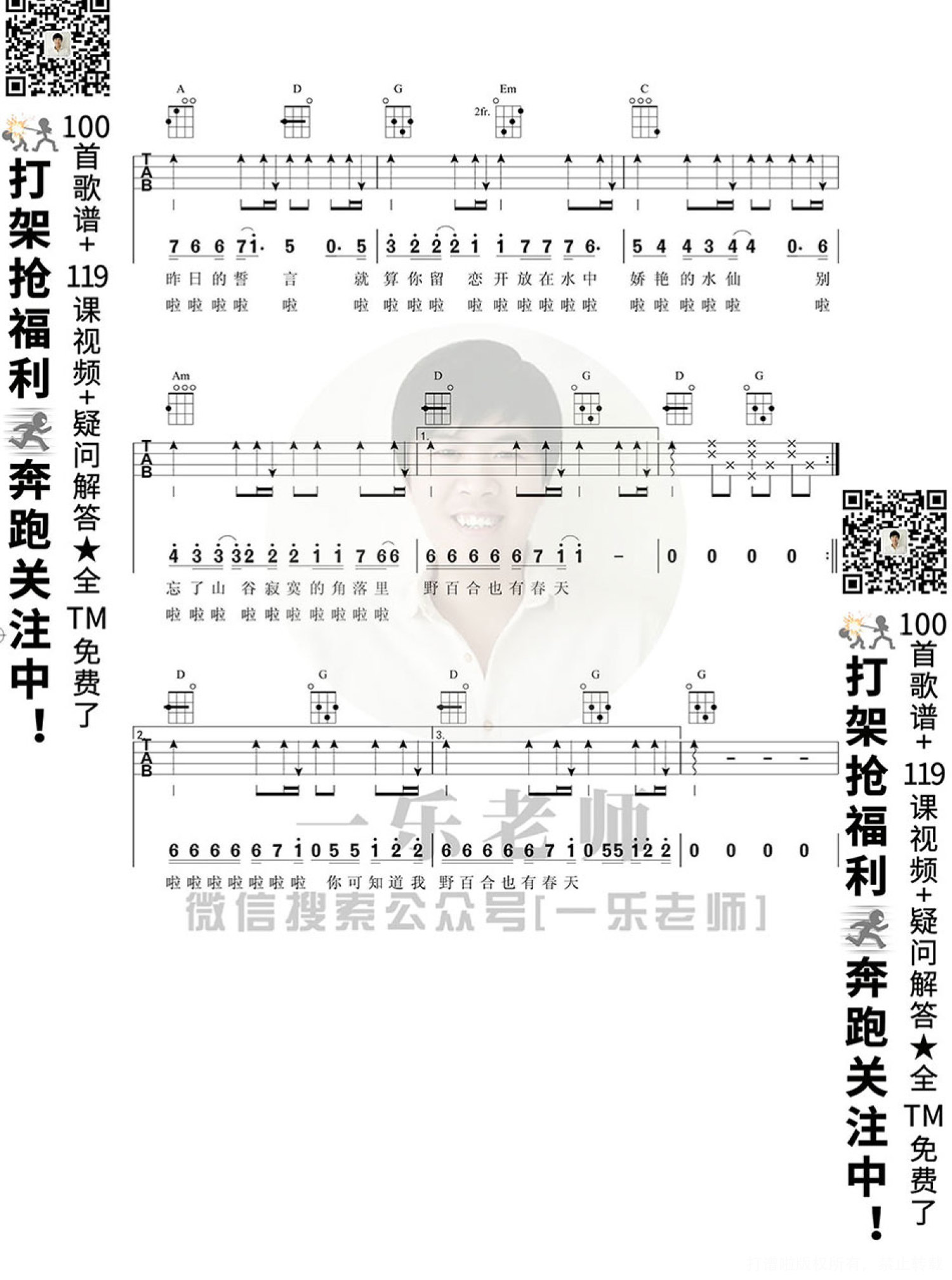 曲谱介绍: 《野百合也有春天》尤克里里谱