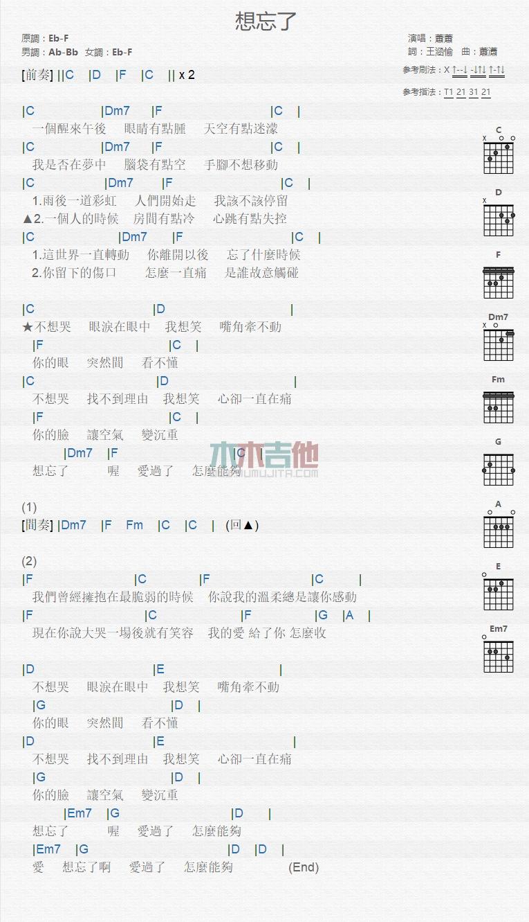 想忘了_吉他谱 - 想忘了 - 吉他弹唱谱