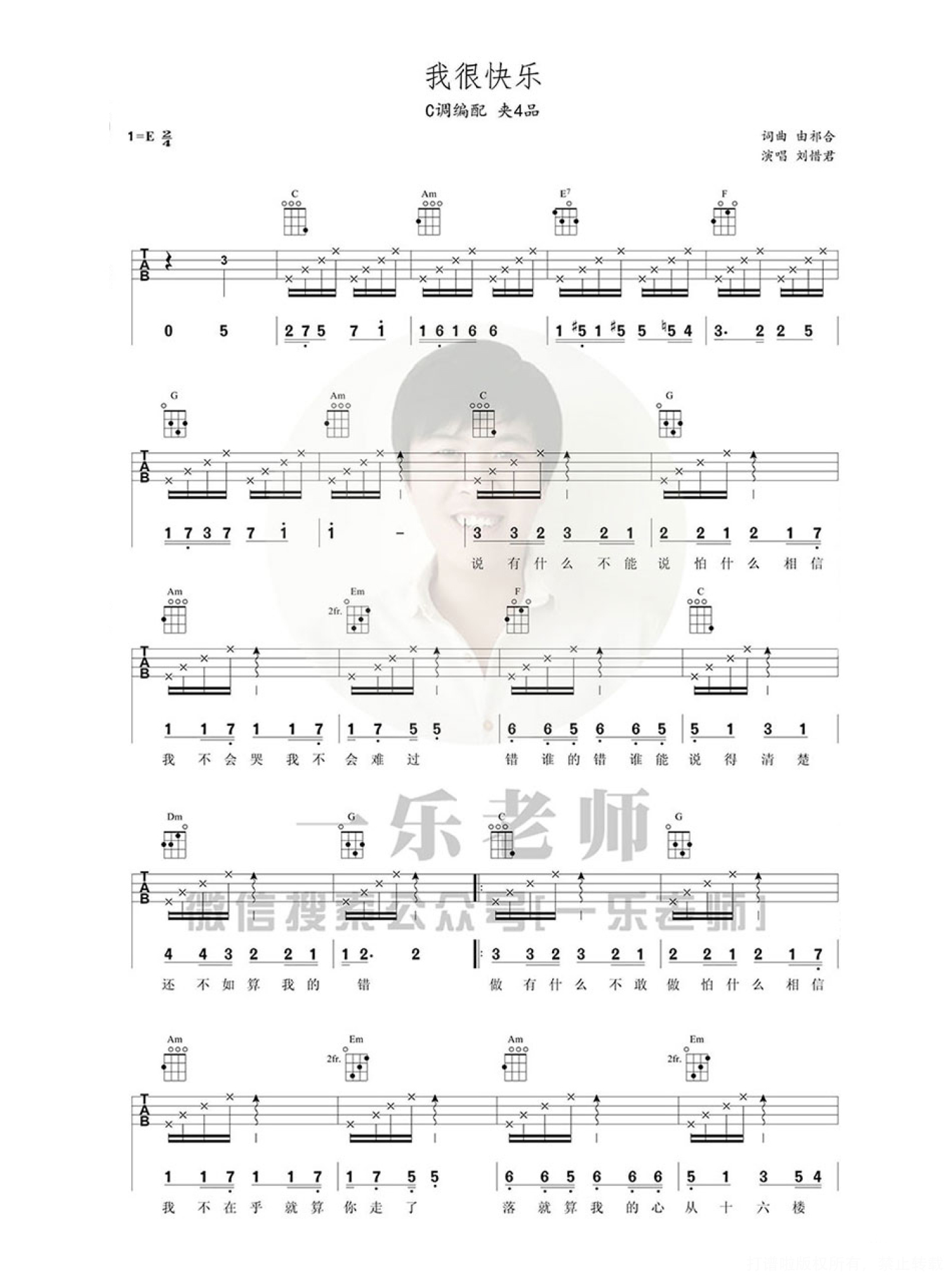 我很快乐尤克里里谱 - 刘惜君