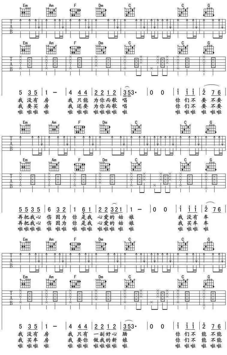 当前位置:琴谱网>吉他弹唱>没有车没有房