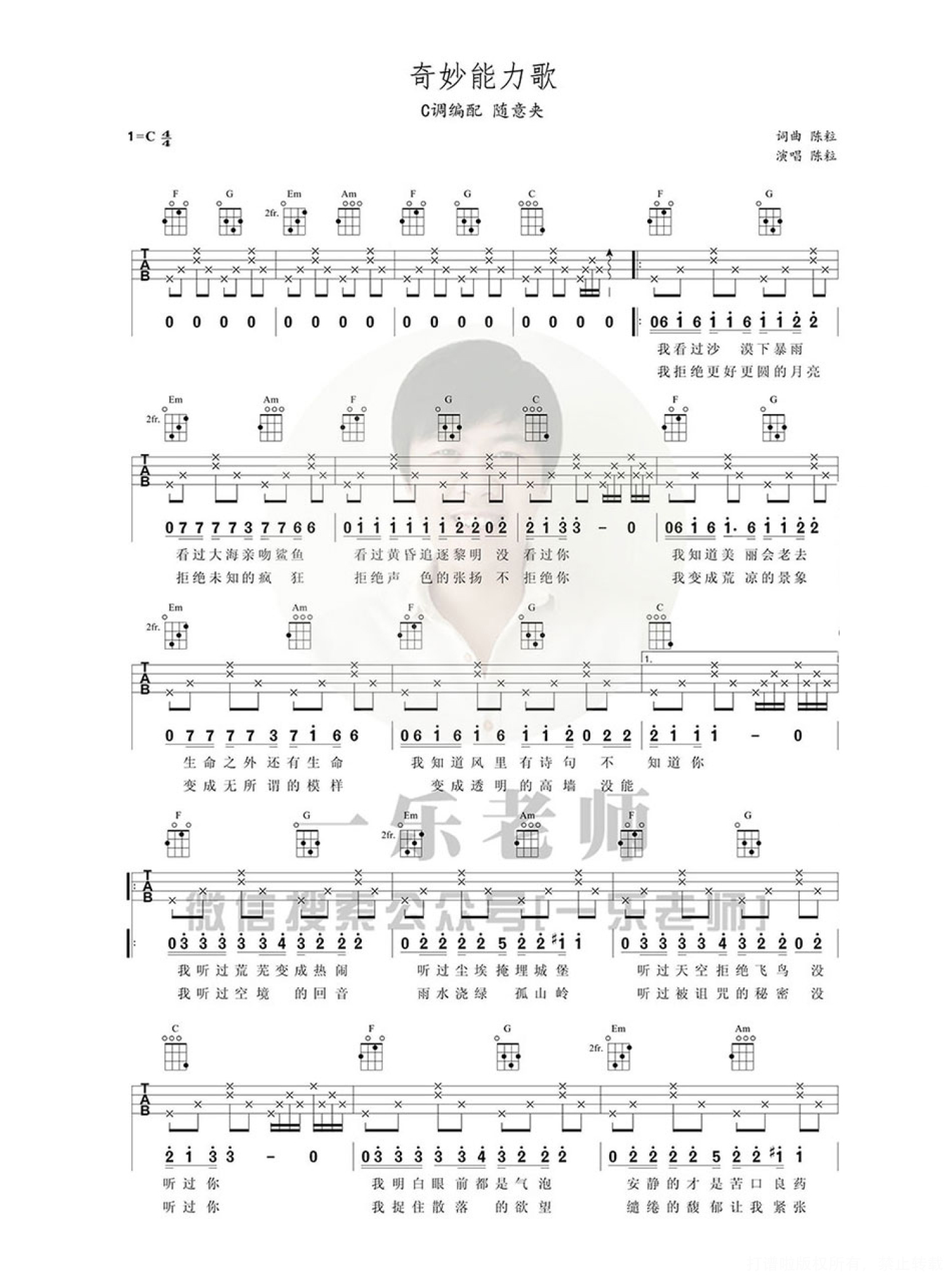 曲谱介绍: 《奇妙能力歌》尤克里里谱
