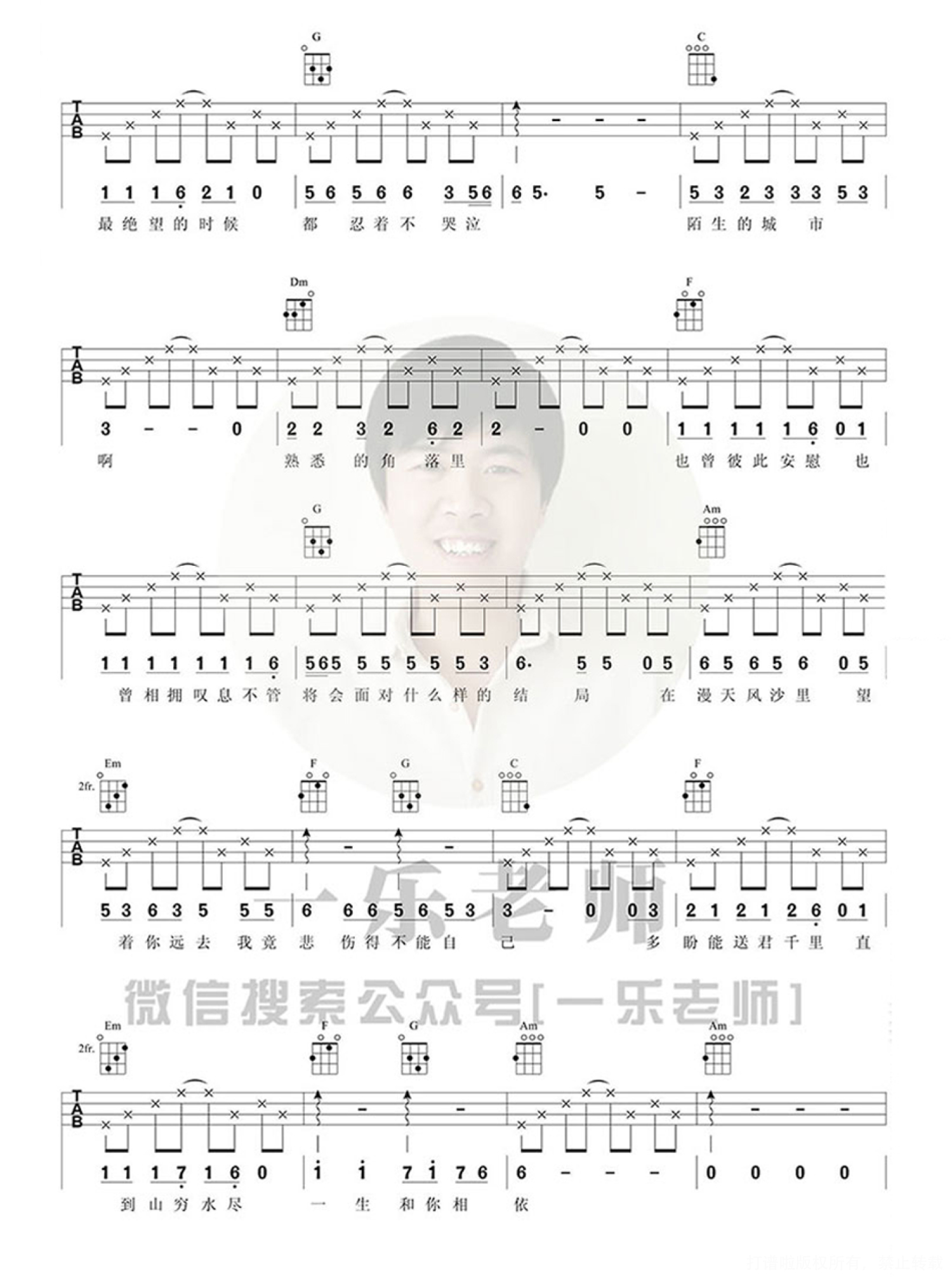 曲谱介绍: 《漂洋过海来看你》尤克里里谱