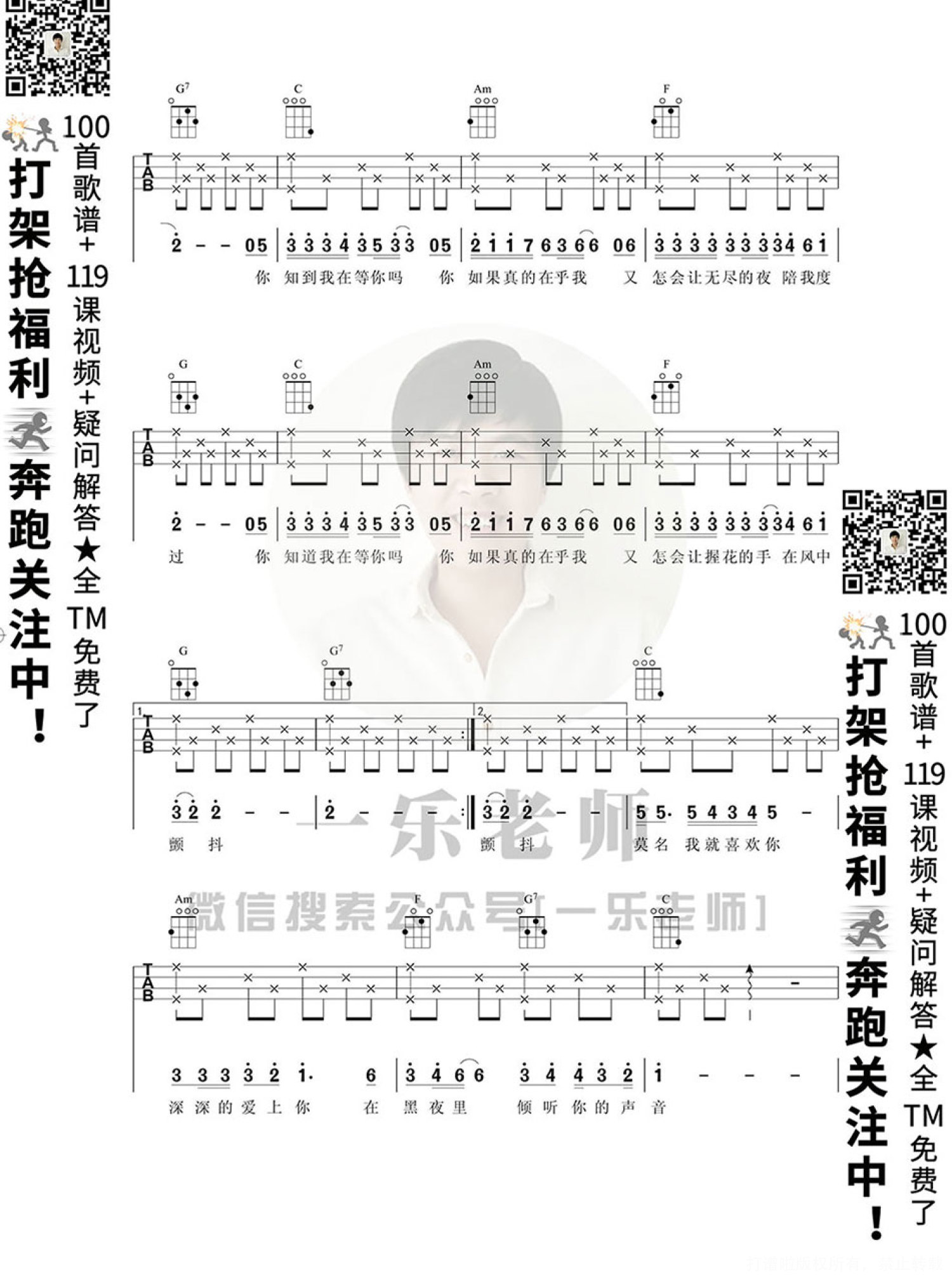 当前位置:琴谱网>尤克里里>你知道我在等你吗