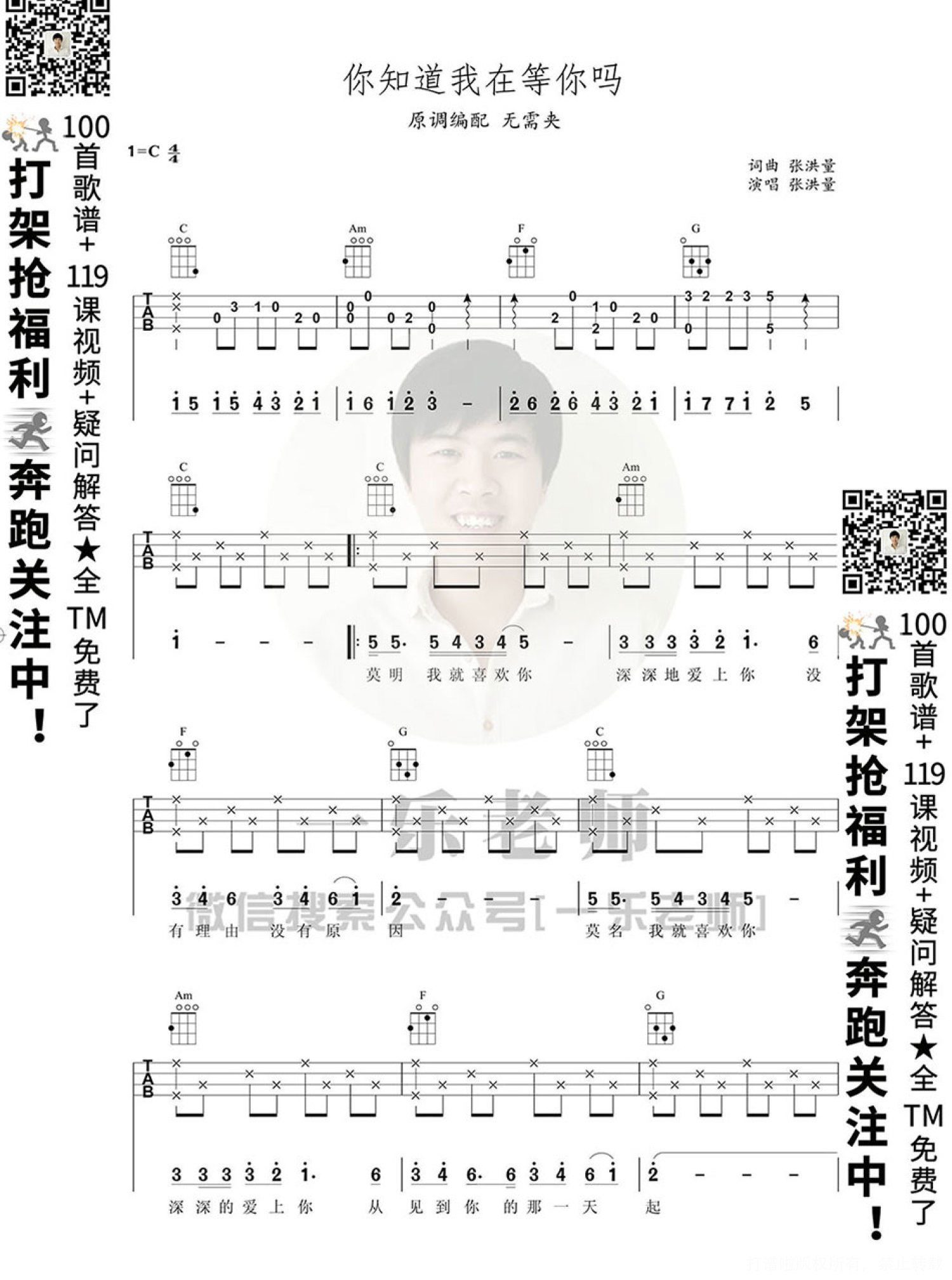 你知道我在等你吗尤克里里谱 - 张洪量