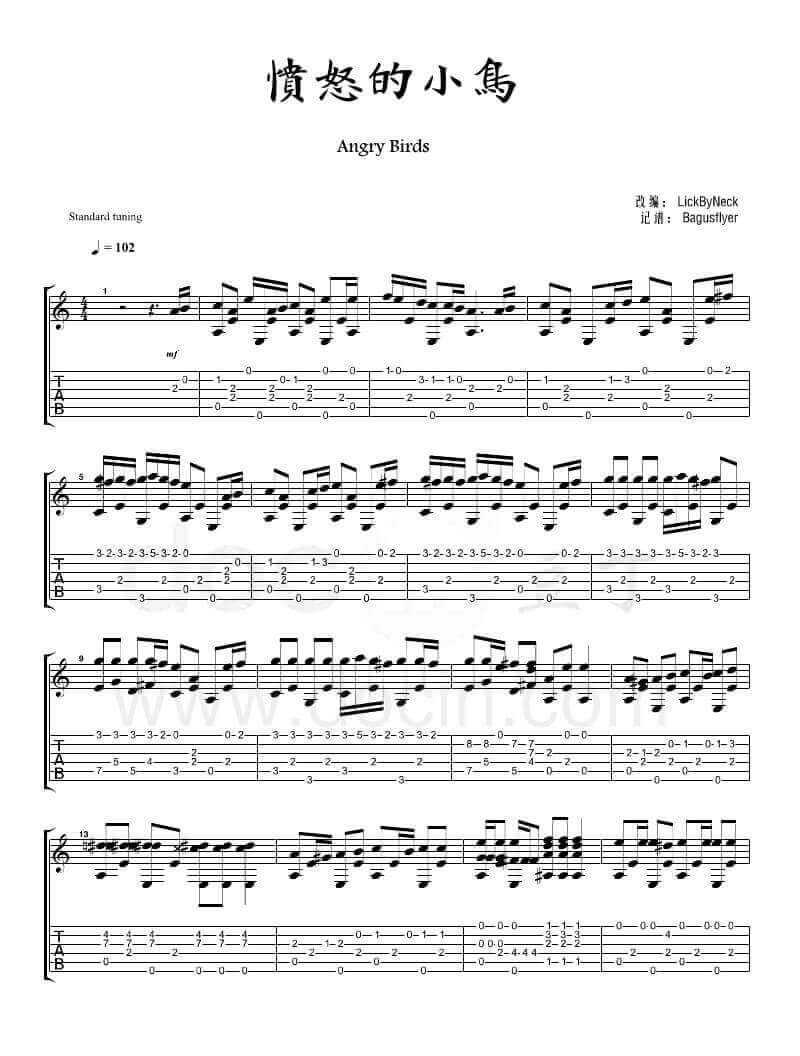 曲谱介绍: Angry Birds吉他谱由琴谱网吉他网编配完成。