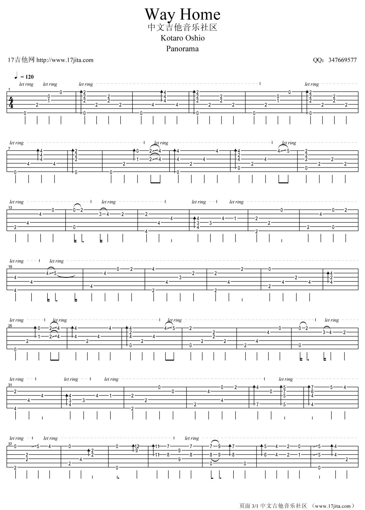 曲谱介绍: 家路吉他谱由17吉他编配完成。