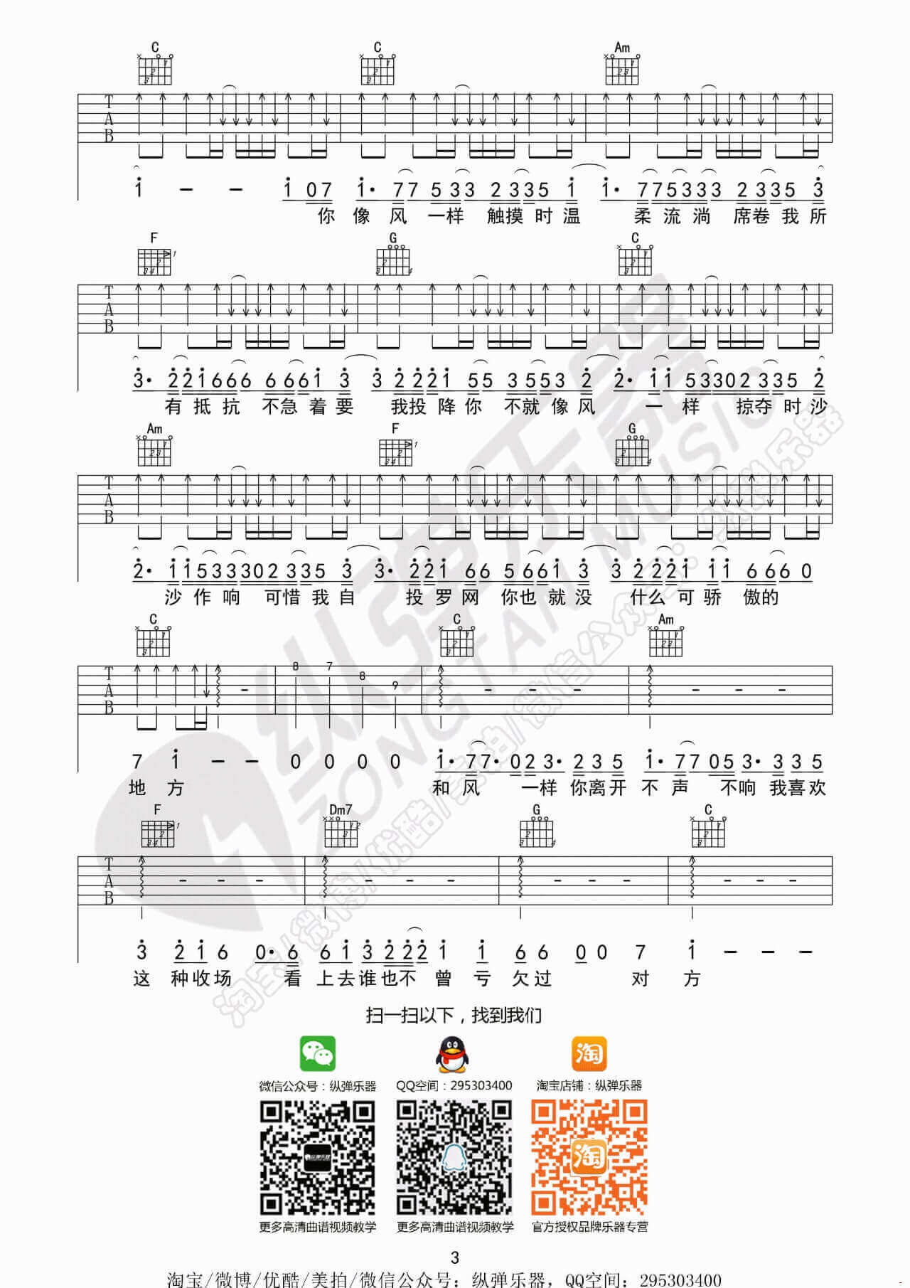 当前位置:琴谱网>吉他弹唱>像风一样