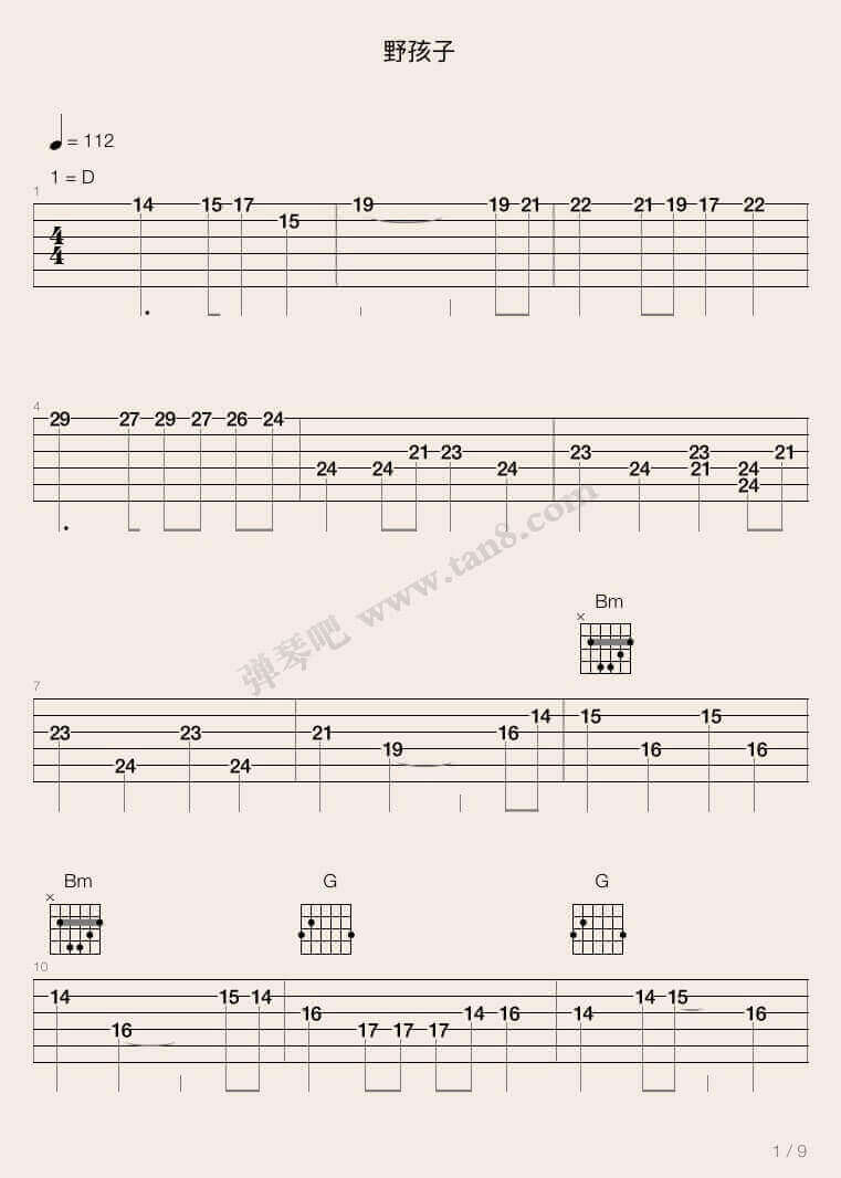 曲谱介绍: 野孩子吉他谱采用了D调指法,由弹琴吧编配完成。野孩子是我听杨千嬅的歌曲中听的最早的一首歌,这首歌的知名度和影响力非常大。