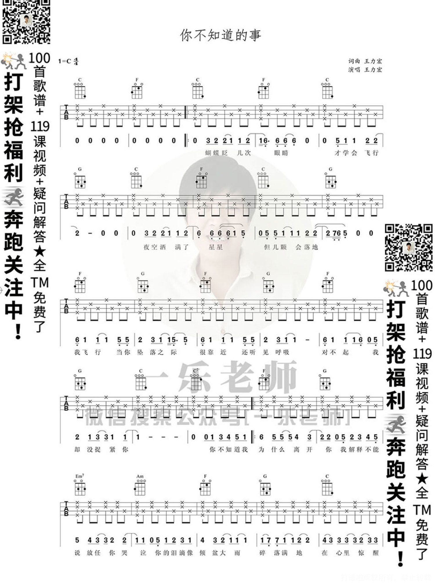 你不知道的事尤克里里谱 - 王力宏