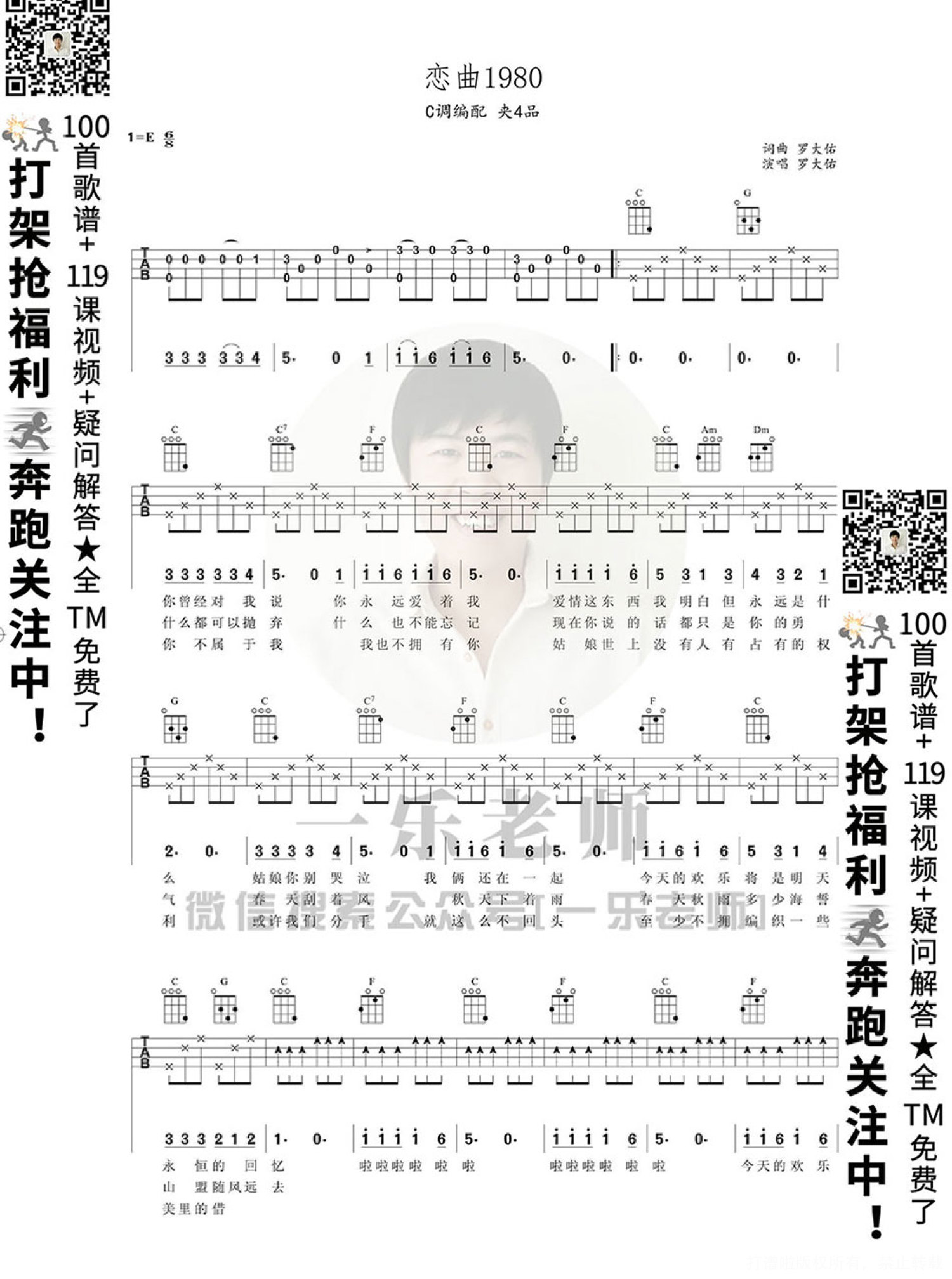 曲谱介绍: 《恋曲1980》尤克里里谱