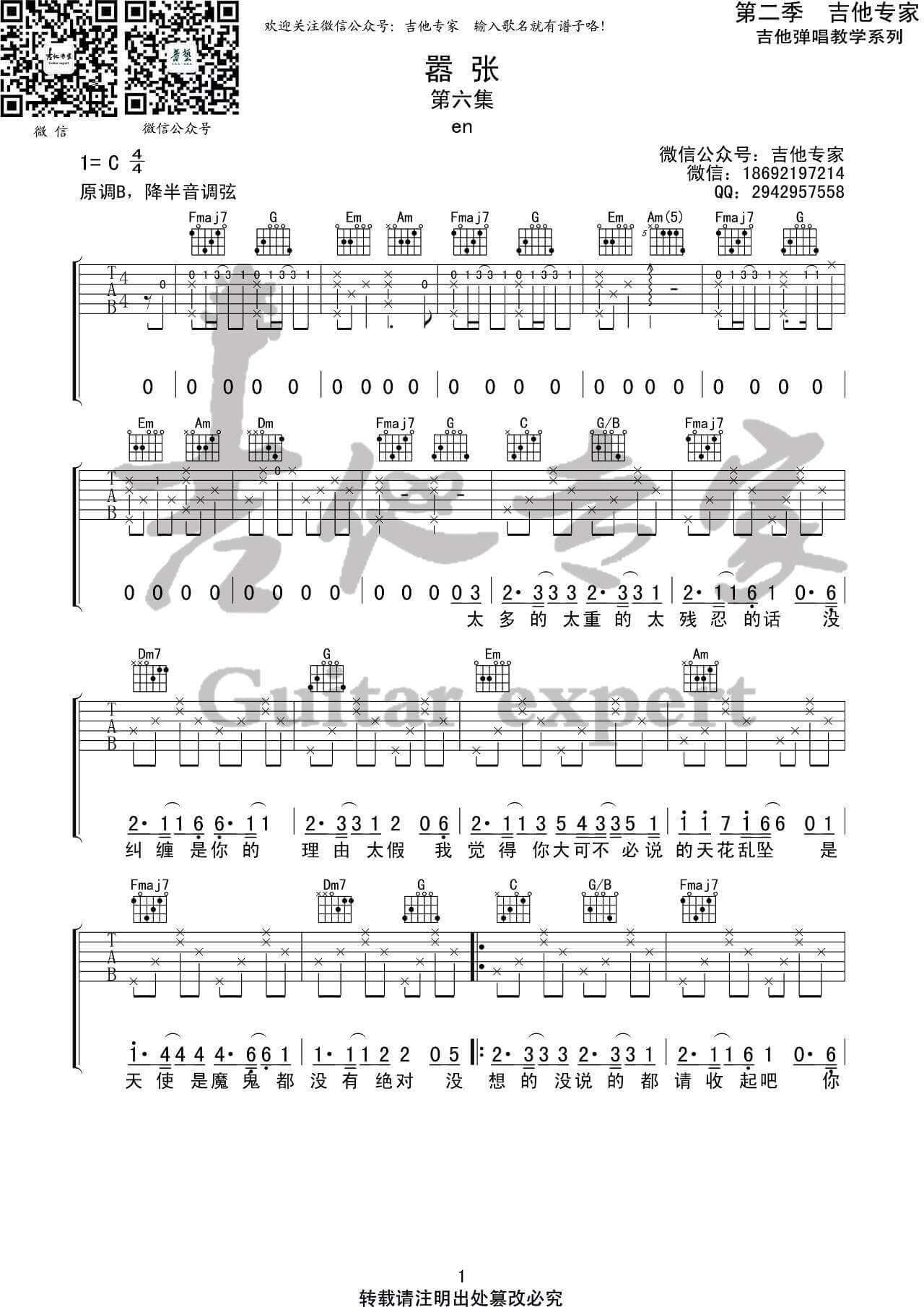 当前位置:琴谱网>吉他弹唱>嚣张