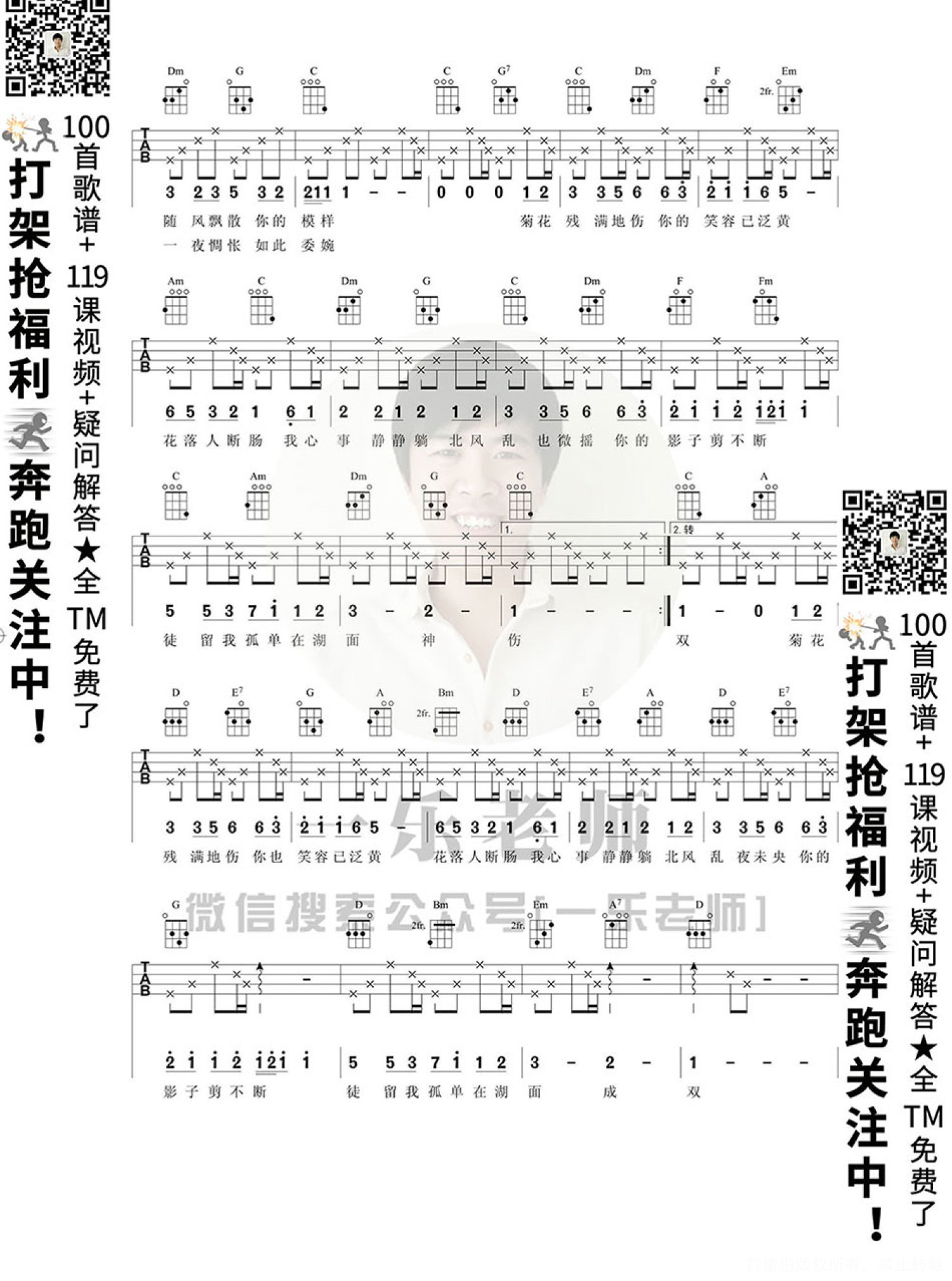 曲谱介绍: 《菊花台》尤克里里谱