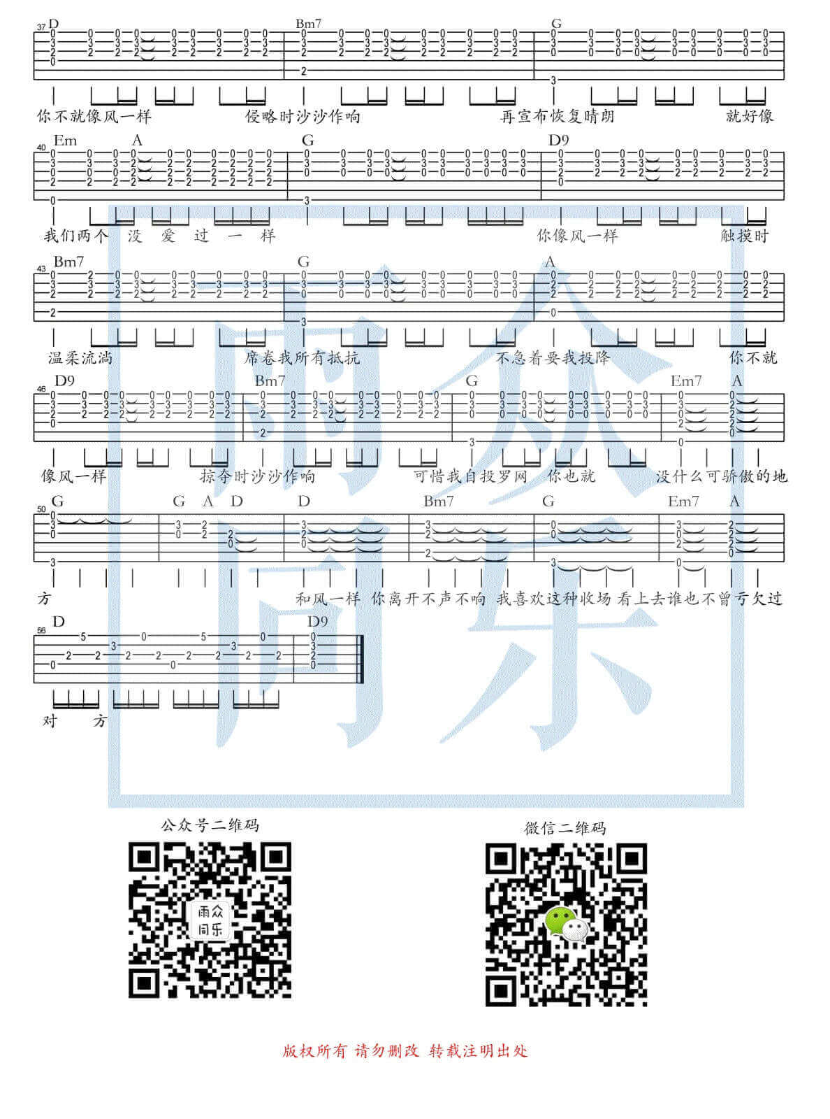 当前位置:琴谱网>吉他弹唱>像风一样