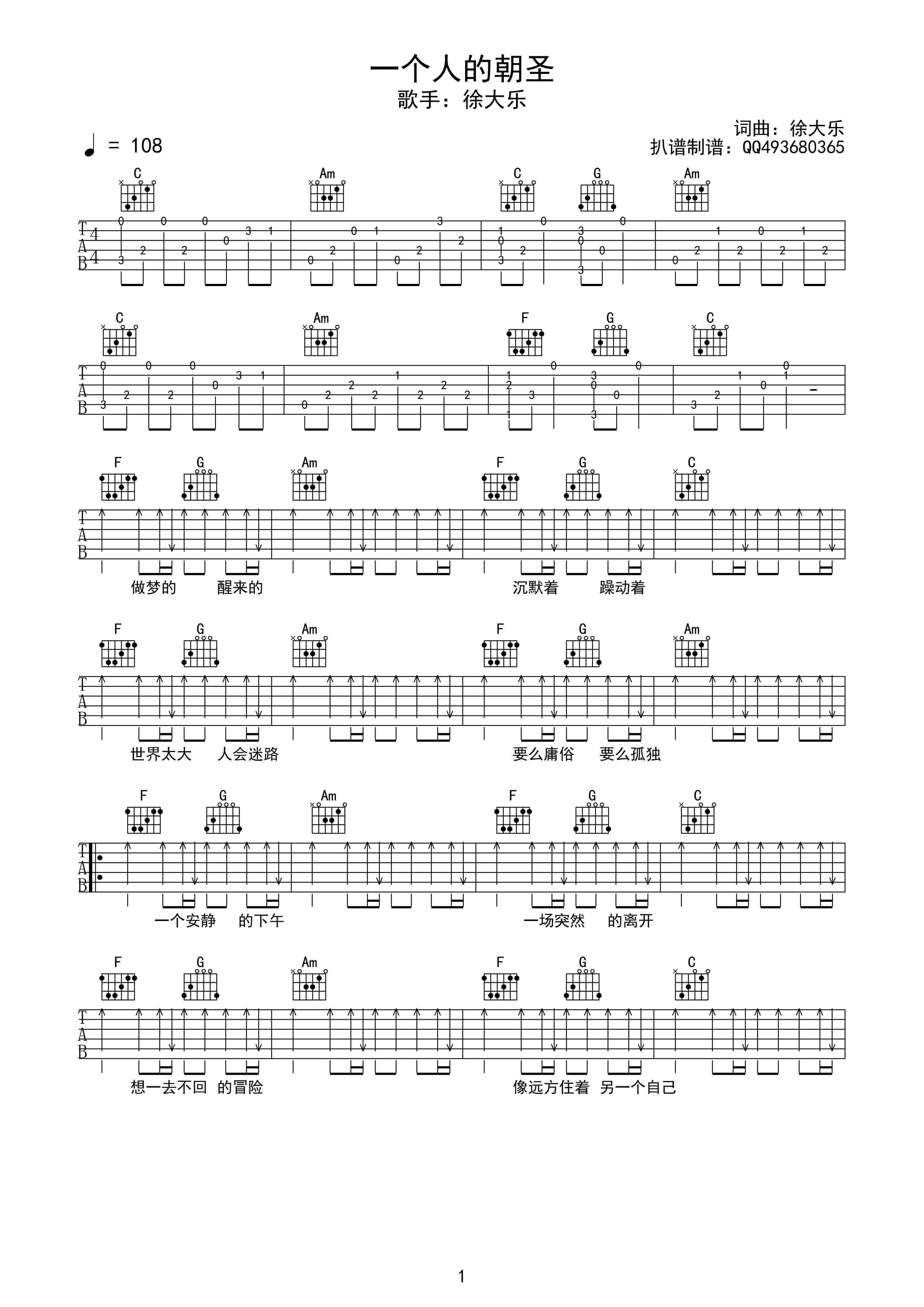 一个人的朝圣吉他谱 - 徐大乐 - 吉他弹唱谱