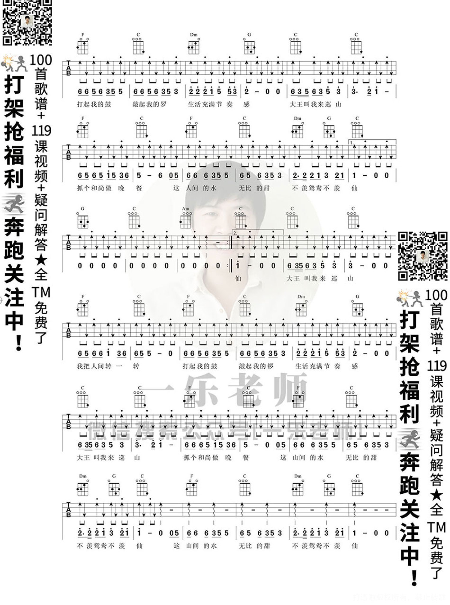 曲谱介绍: 《大王叫我来巡山》尤克里里谱