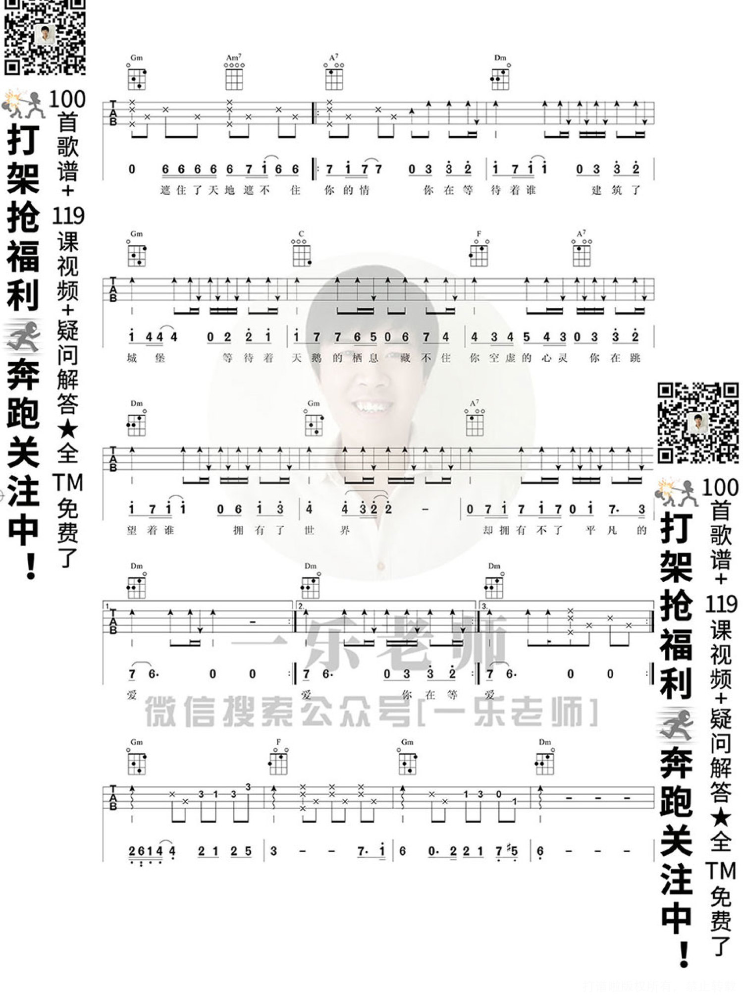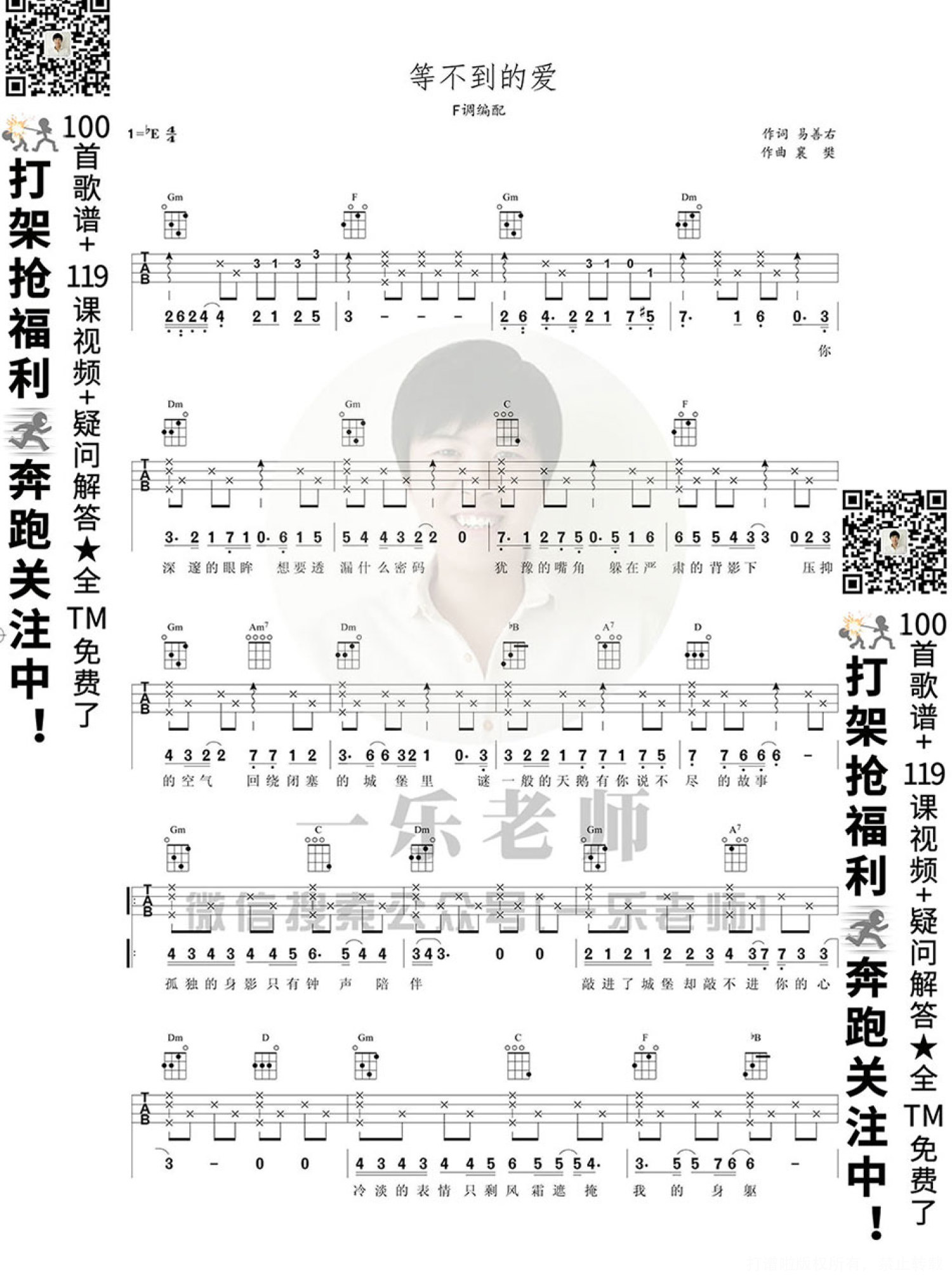 曲谱介绍: 《等不到的爱》尤克里里弹唱谱