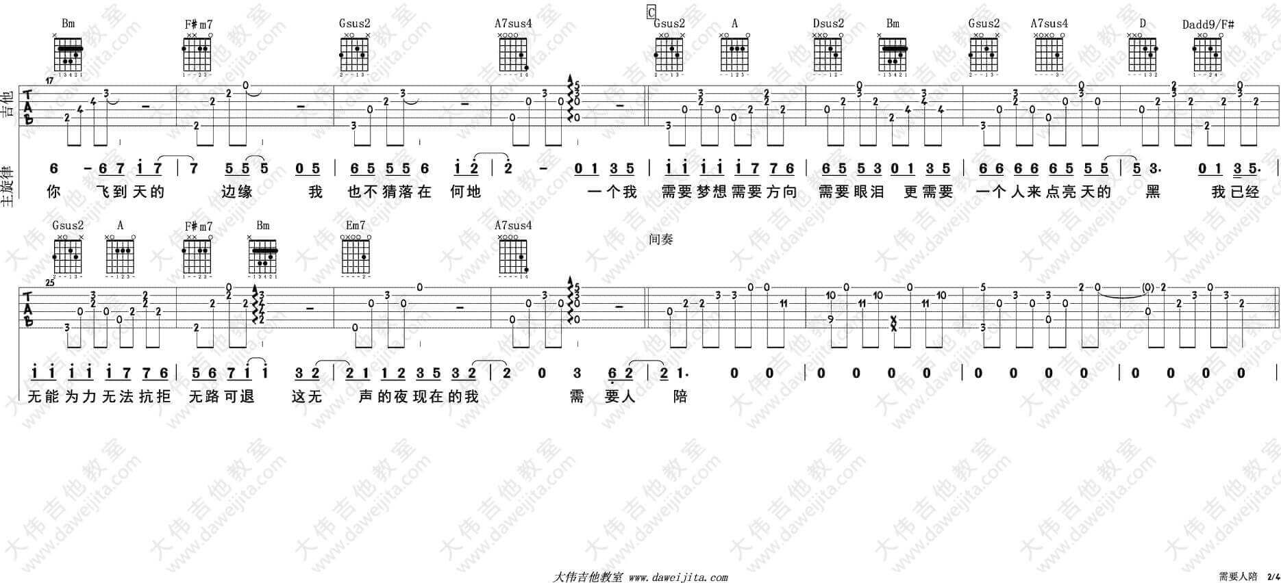 当前位置:琴谱网>吉他弹唱>需要人陪