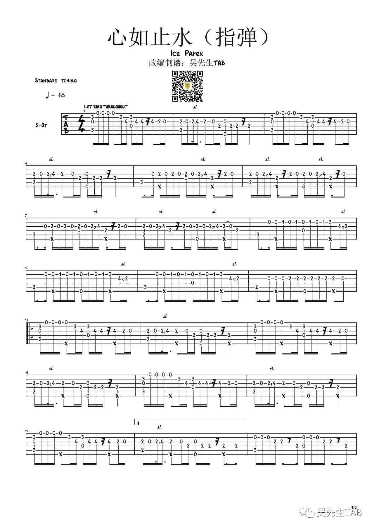 曲谱介绍: 心如止水指弹谱由吴先生编配完成。这首歌在各大音乐平台都有很高的知名度,现在已经广泛被运用在各种短视频平台的配音,这首歌并不像一般的流行乐,他加入了更多新元素,一些水滴声,加上节奏感非常强的旋律,是年轻一代人最爱的歌曲了吧,这首歌更加是加上了电音和说唱部分,在现代非常流行,期待以后有更多这样的新潮的作品出现。