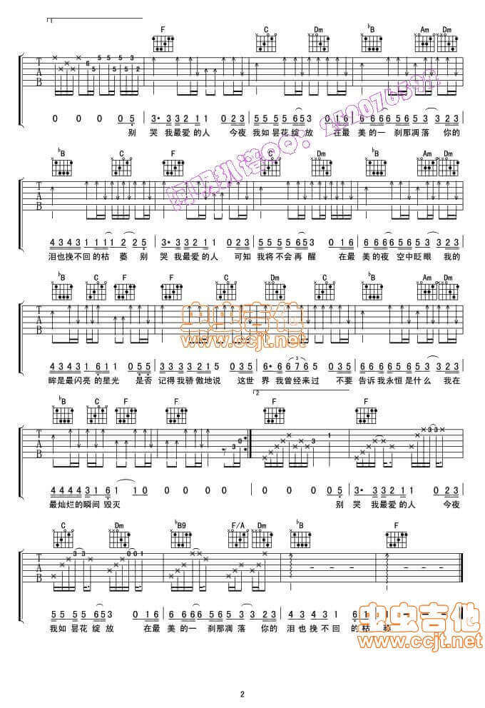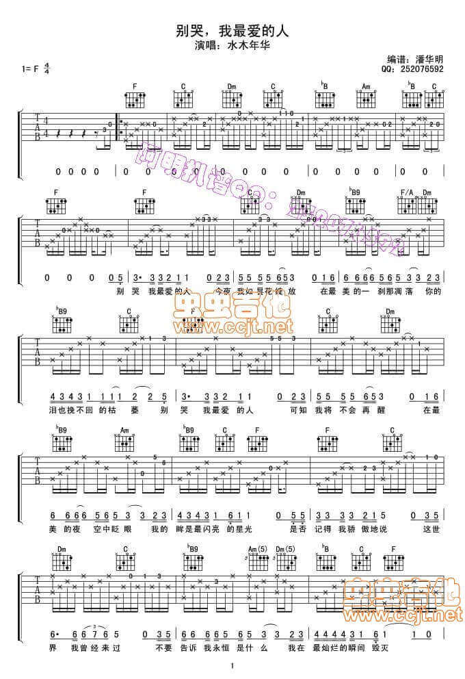 别哭我最爱的人吉他谱 - 水木年华 - F调吉他弹唱谱