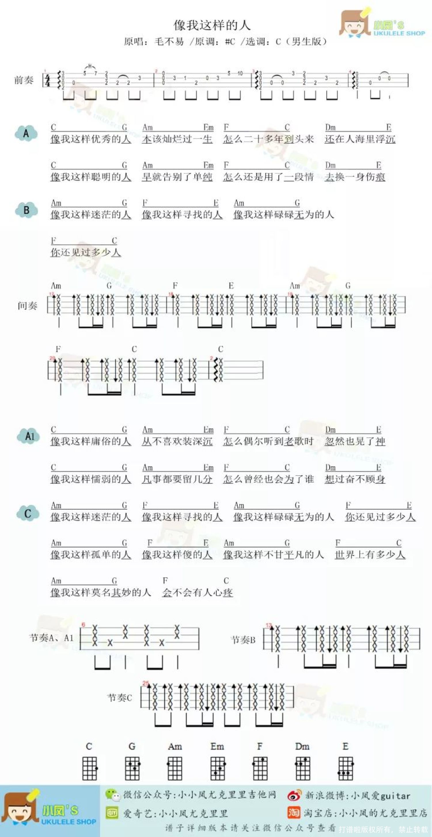 像我这样的人尤克里里谱 - 毛不易