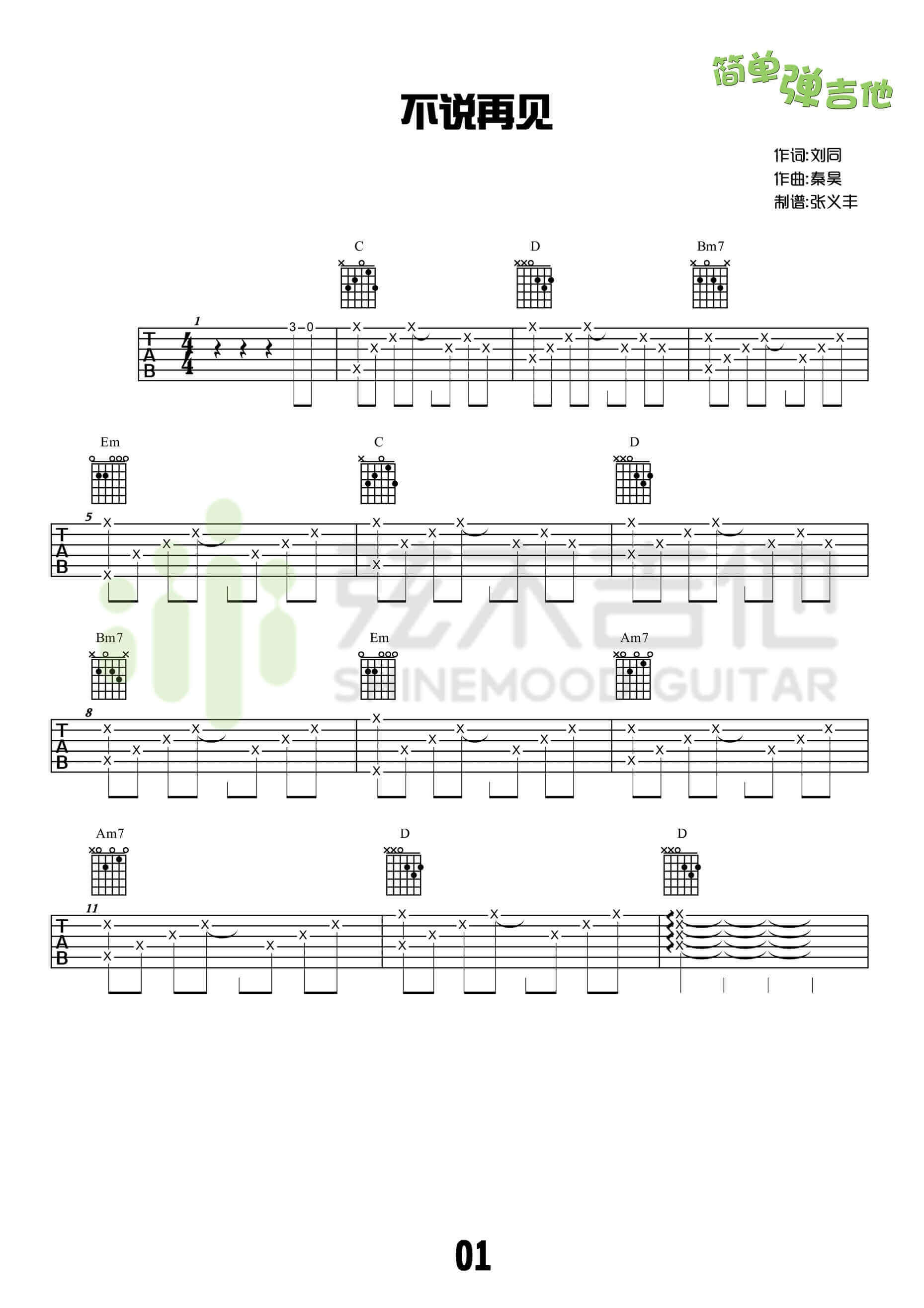 曲谱介绍: 不说再见吉他谱采用了C调指法由弦木吉他编配完成。这首歌曲是电影《谁的青春不迷茫》的主题曲,看电影就知道这是青春学生类型的电影吧,但这首歌曲可没有那种非常伤痛伤感的旋律,反而是非常有活力的旋律,质朴纯洁又可爱的唱词,再搭配好妹妹的少年感的嗓音,真的把那种青春活力彰显得淋漓精致。