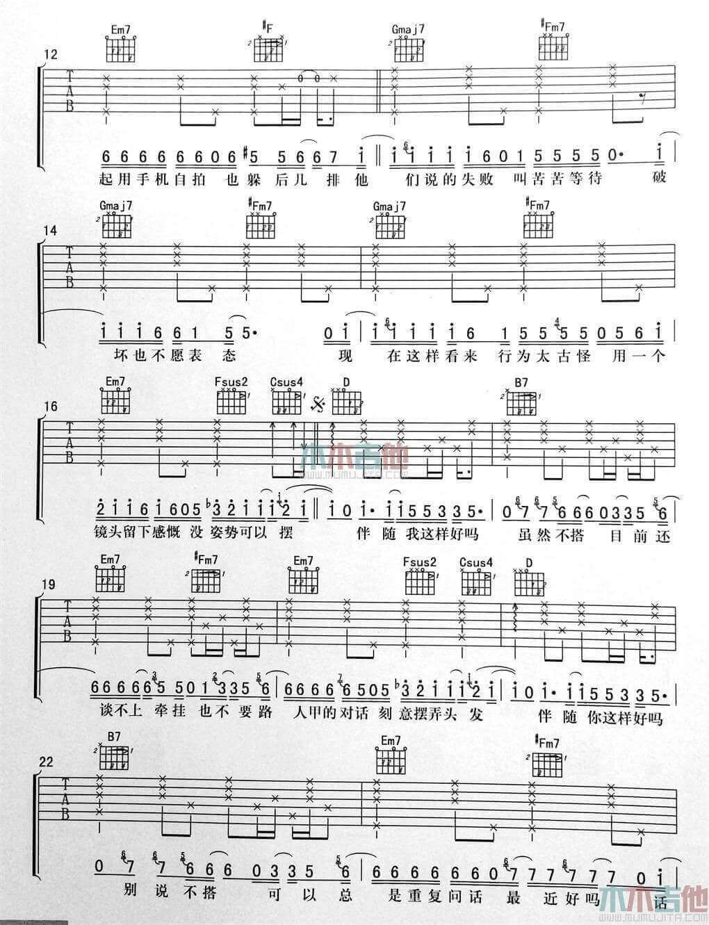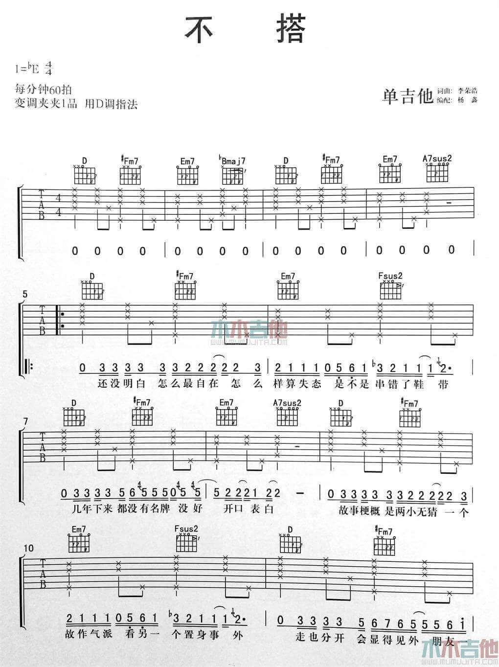 当前位置:琴谱网>吉他弹唱>不搭