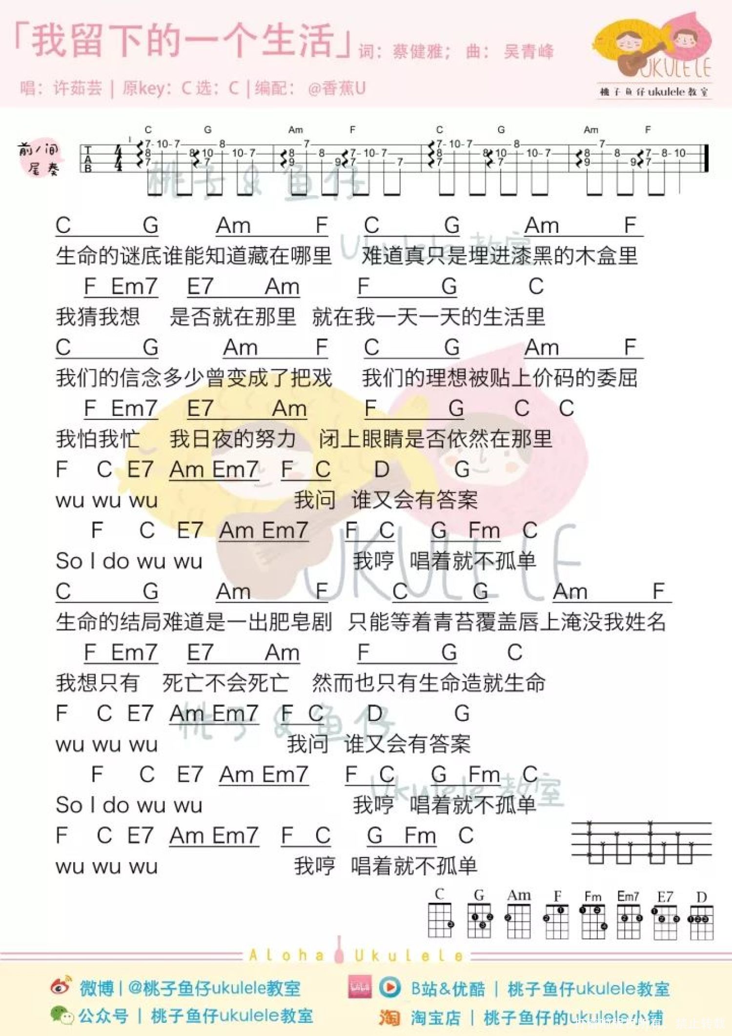 我留下的一个生活尤克里里谱