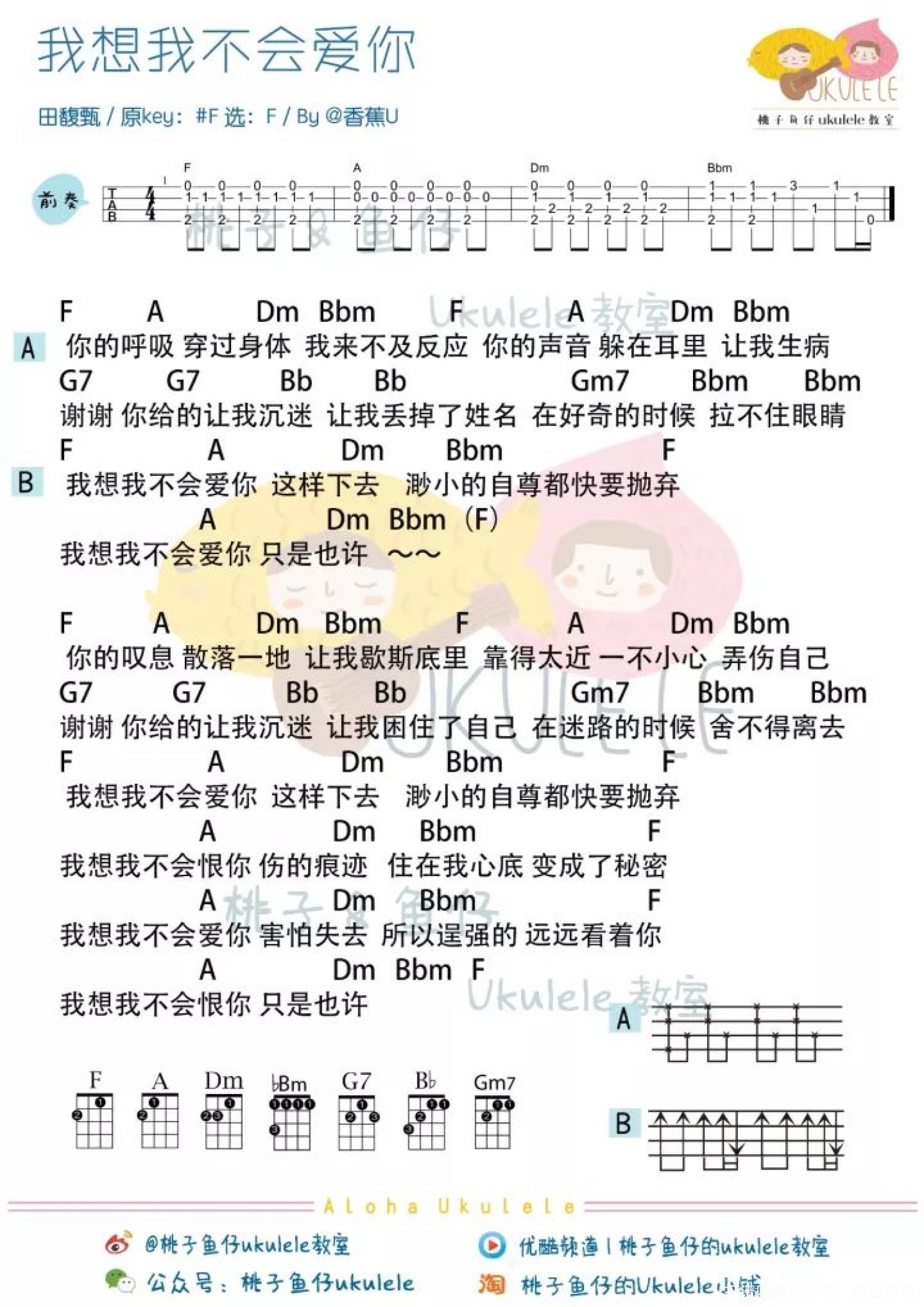 曲谱介绍: 只是也许 你的叹息散落一地 《我想我不会爱你》尤克里里谱
