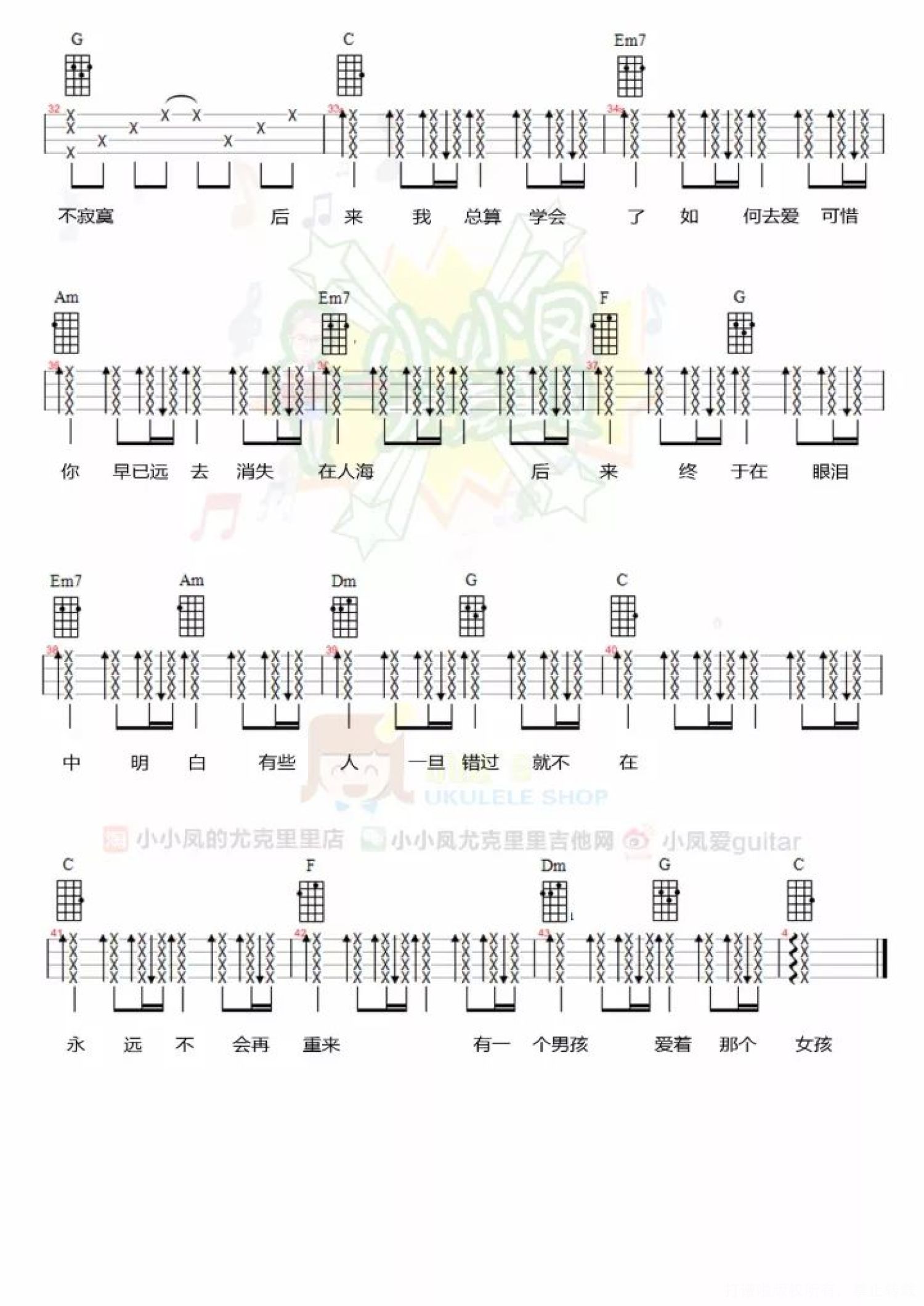当前位置:琴谱网>尤克里里>后来