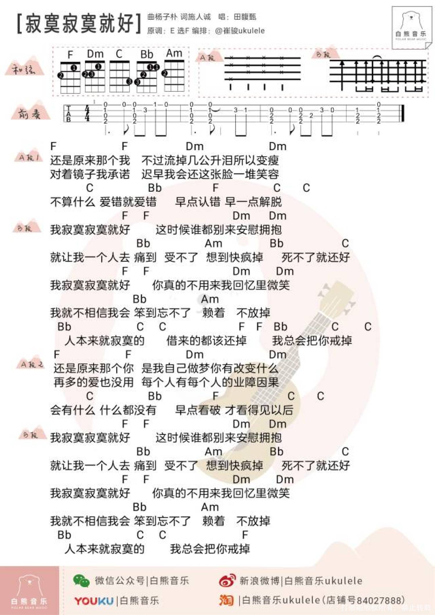 曲谱介绍: 《寂寞寂寞就好》尤克里里谱