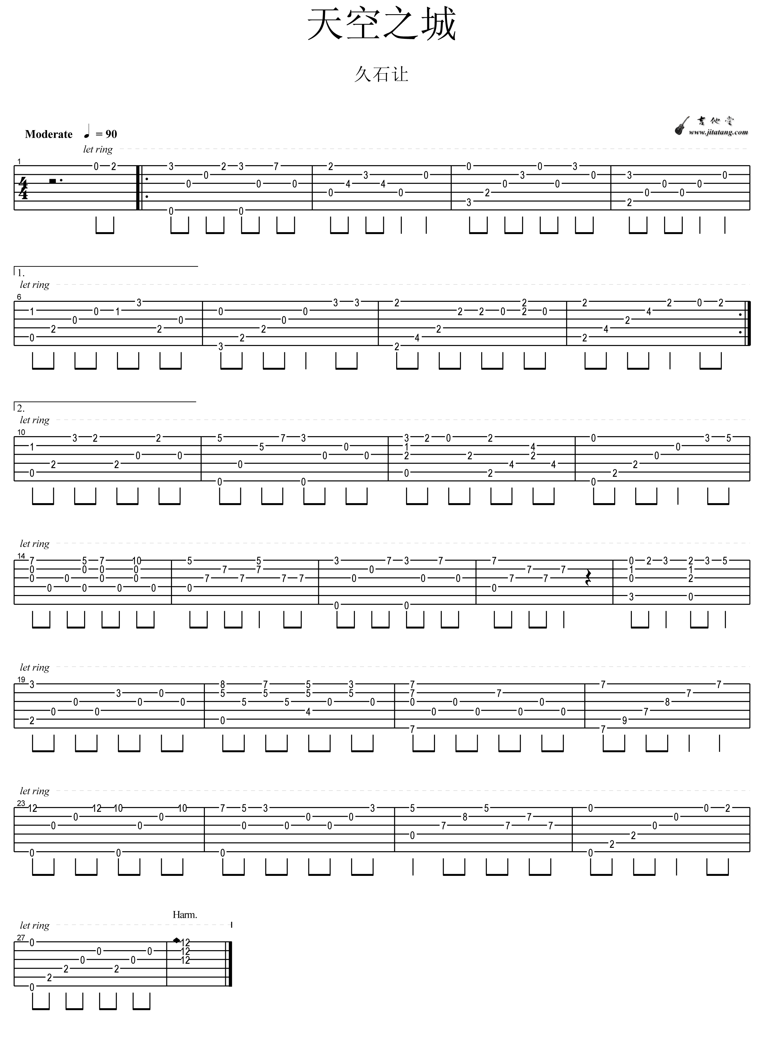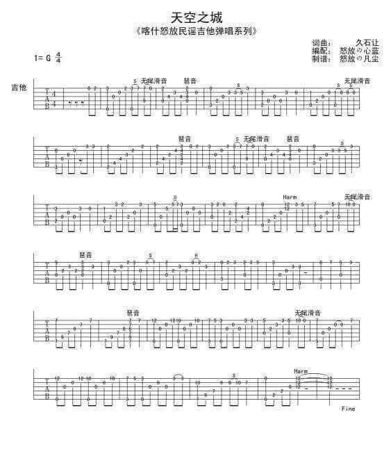 曲谱介绍: 简单版的指弹谱《天空之城》,指弹初学者的福音。琴歌指弹天空之城,喜欢这首歌的朋友不可错过。