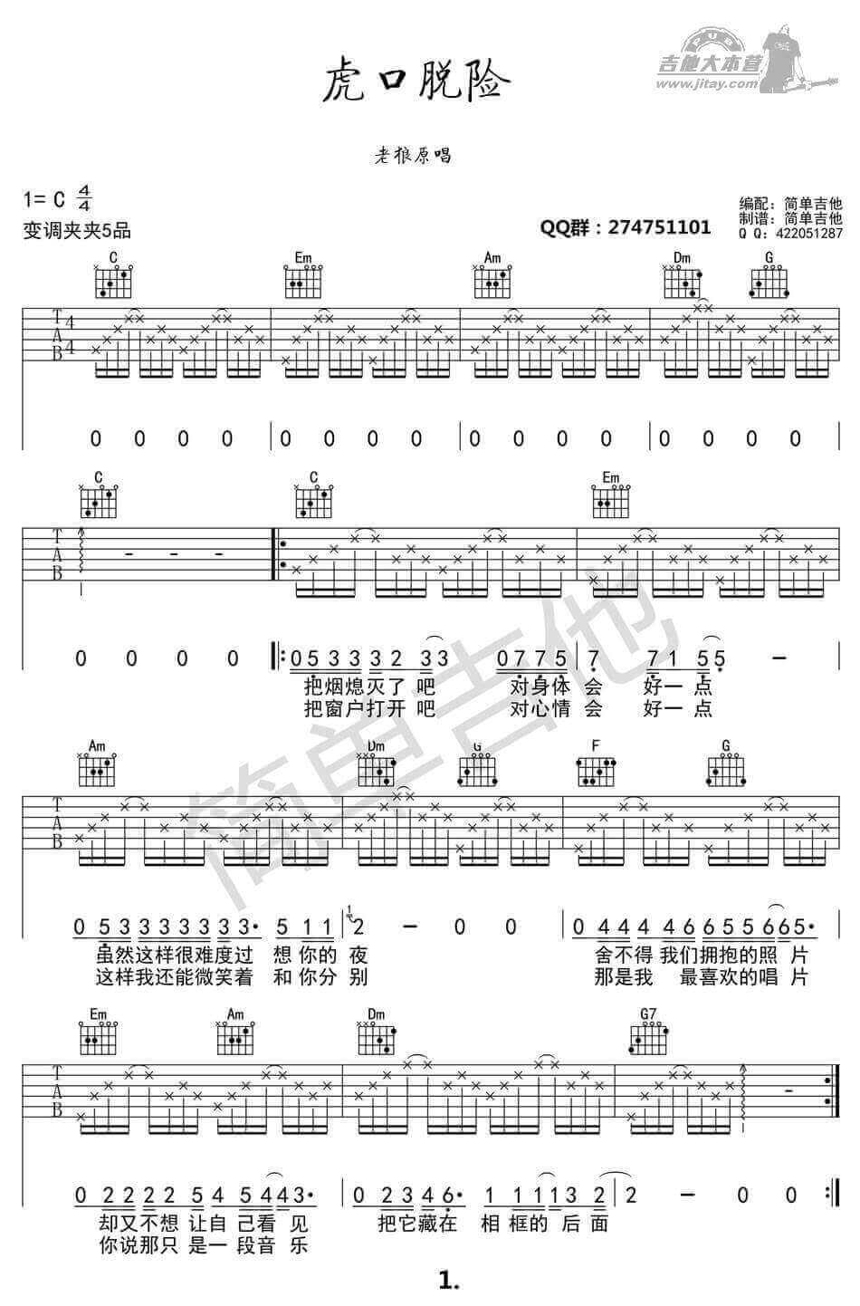 虎口脱险吉他谱 - 老狼 - 吉他弹唱谱