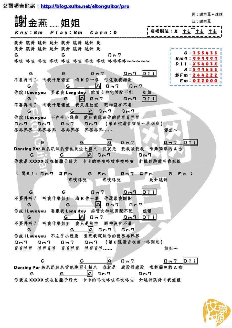 姐姐吉他谱 - 中国好声音 - 吉他弹唱谱