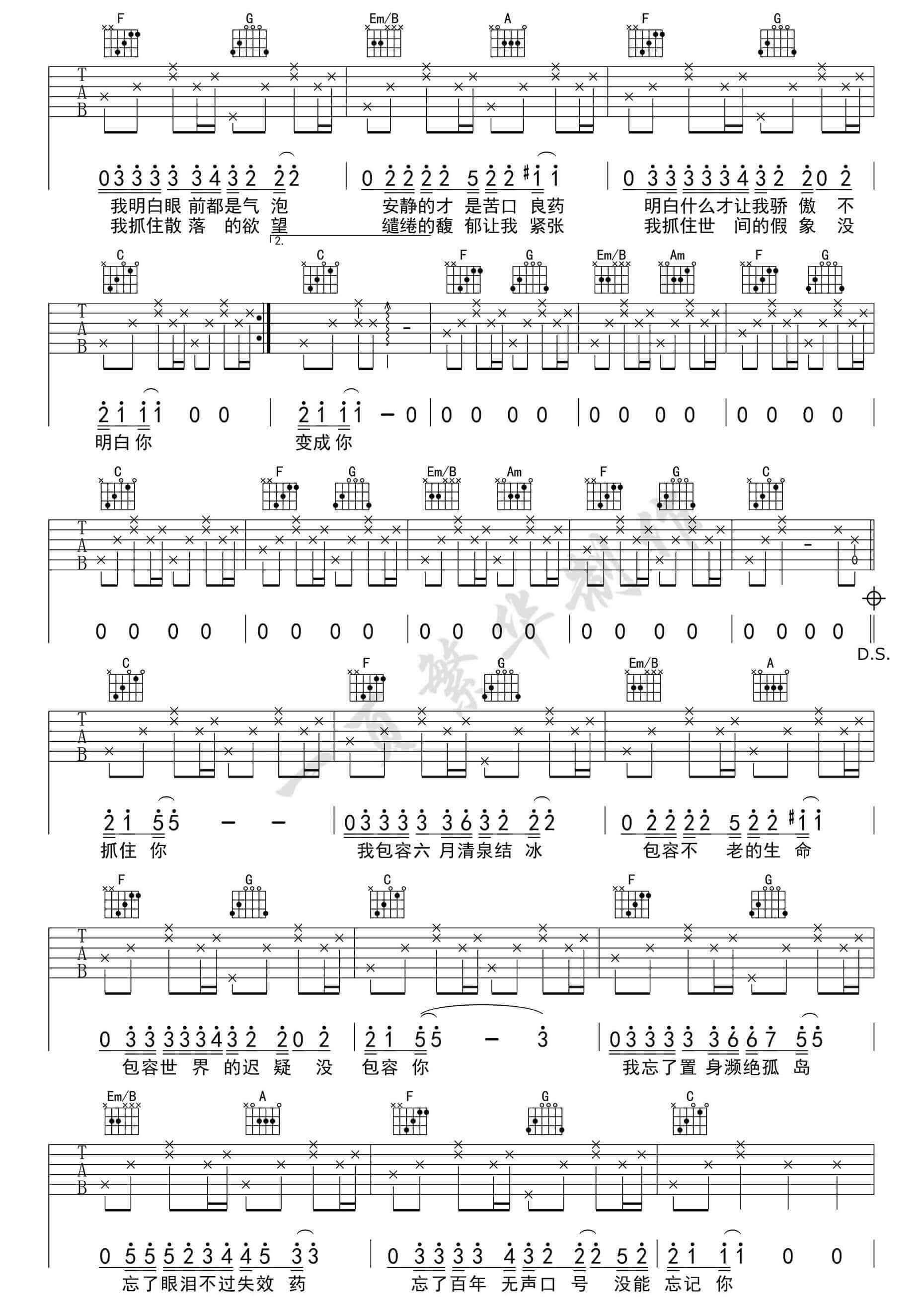 曲谱介绍: 很甜很平静的一首歌,独立音乐人陈粒的歌,小文青必备。 下面是C调高清的吉他谱: