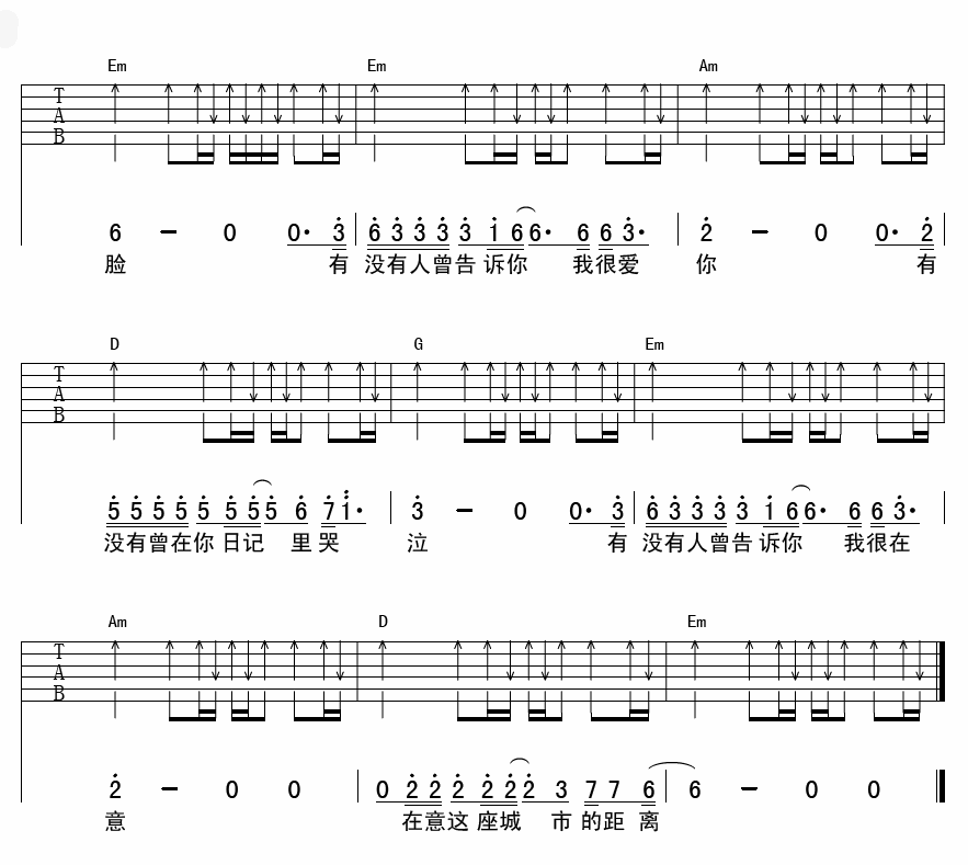 当前位置:琴谱网>吉他弹唱>有没有人告诉你