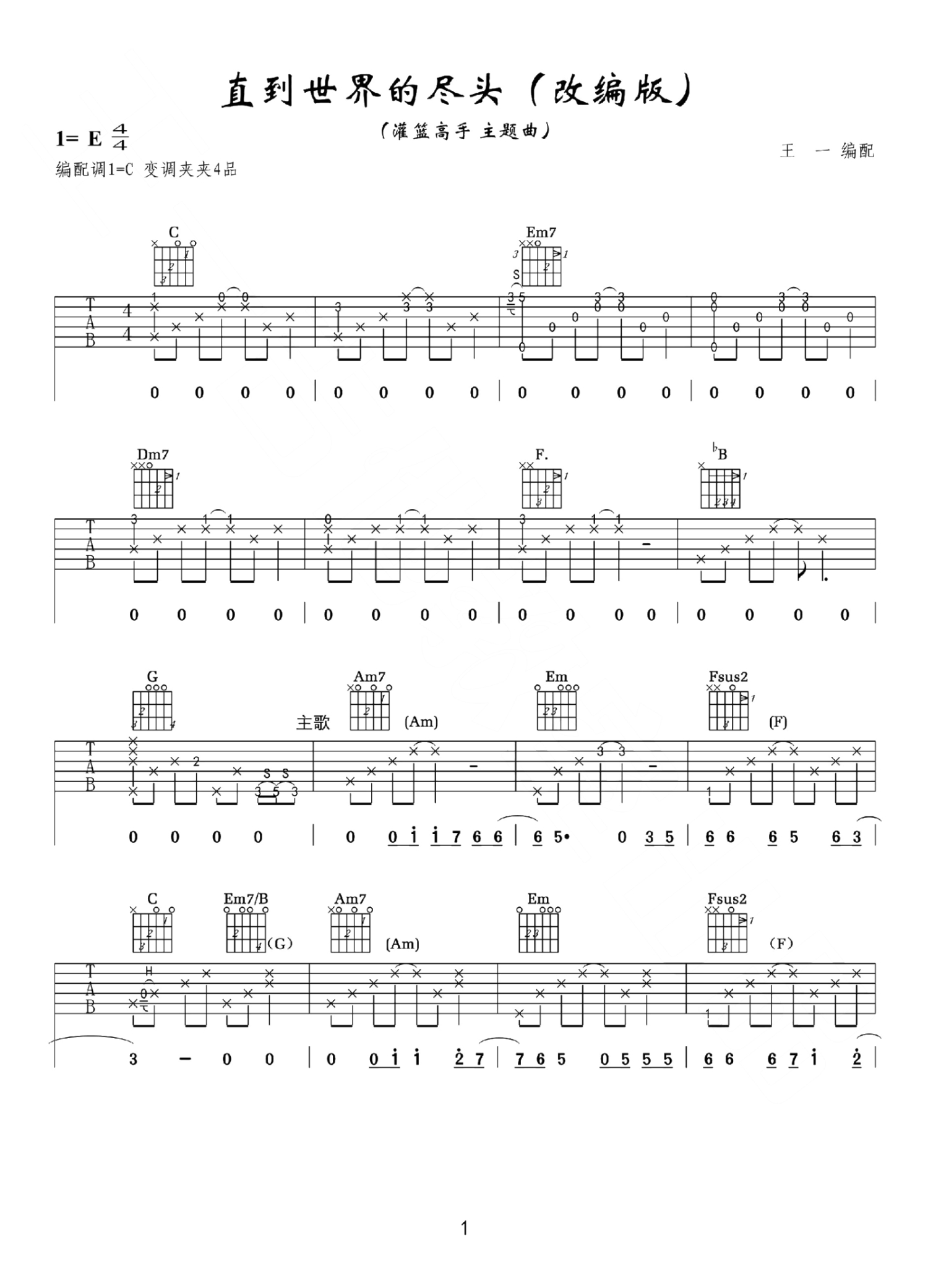 曲谱介绍: 直到世界的尽头吉他谱,《灌篮高手》主题曲,原调E,编配调C,变调夹夹四品。男生可以不使用变调夹。永远的灌篮高手,包含了多少人的青春动漫音乐歌曲,让人热血沸腾的神作,直到世界的尽头六线谱,用抒情的风格重新改编了这首歌曲,希望依旧能让大家回忆起那些曾经让我们哭过笑过喧嚣过热血的画面。