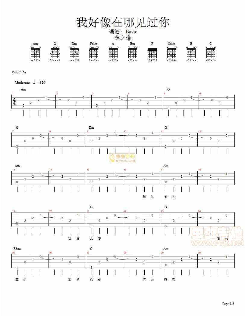 我好像在哪见过你吉他谱 - 薛之谦 - C调吉他弹唱谱