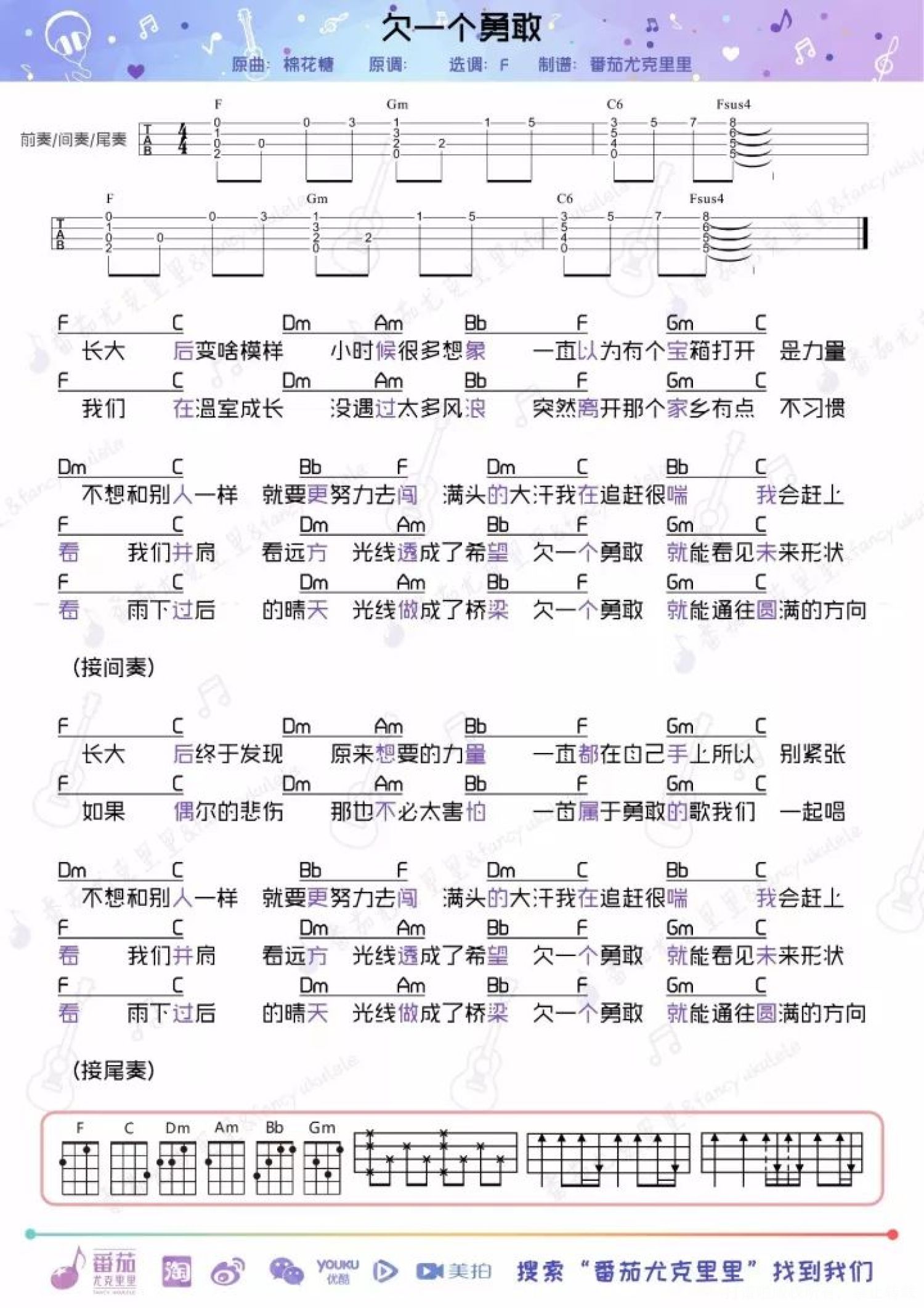 曲谱介绍:     《欠一个勇敢》尤克里里谱